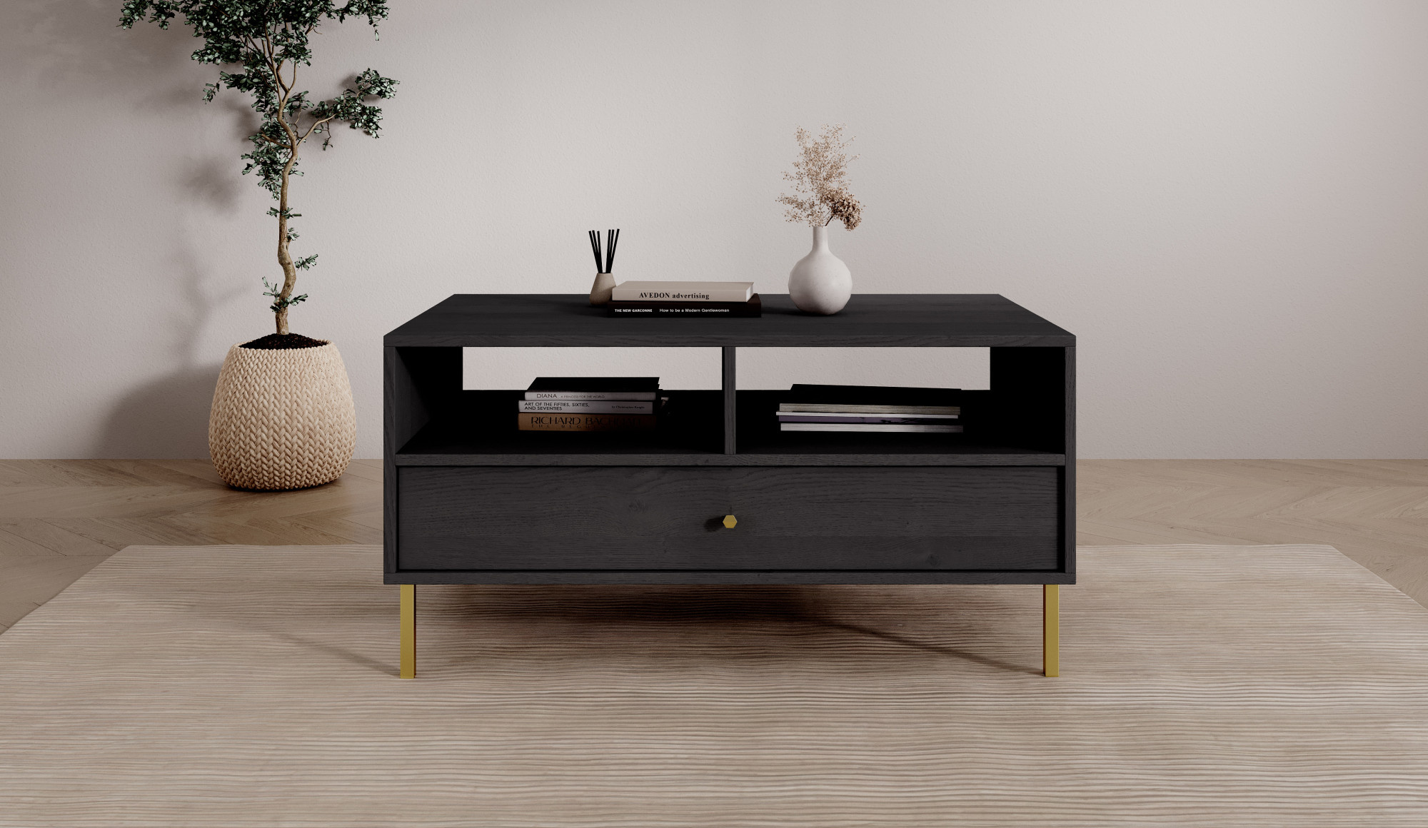 Konferenční stolek Tili je elegantní nábytek s moderním designem, který se dokonale hodí do různých interiérových aranžmá. Jeho desky jsou k dispozici ve třech sofistikovaných barvách: eukalyptus, černá a písková béžová, což umožňuje ideální sladění s interiérem obývacího pokoje. Barva eukalyptu vnáší do interiéru nádech přírody a svěžesti, černá zdůrazňuje eleganci a nadčasovost, zatímco písková béžová přidává teplo a jemnost. Konstrukce stolku je vyrobena z vysoce kvalitních materiálů, které zajišťují trvanlivost a stabilitu. Konferenční stolek Tili je spojením funkčnosti a estetiky, které je ideálním doplňkem moderních i klasických interiérů.