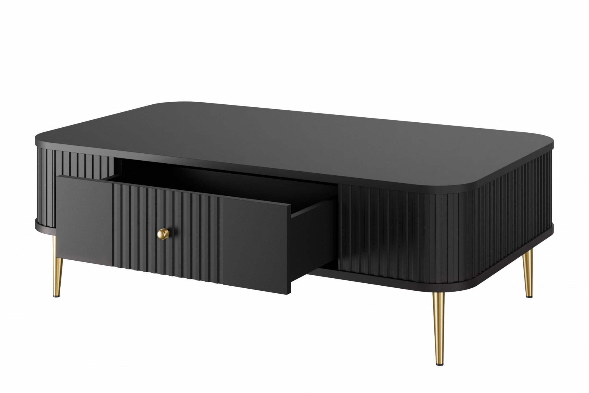 Konferenční stolek se zásuvkou Vesper 103x60 cm - černý / zlaté nohy, Šířka: 103, Výška: 35, Hloubka: 60, Výška nohou: 15, Hloubka desky: , Montáž: