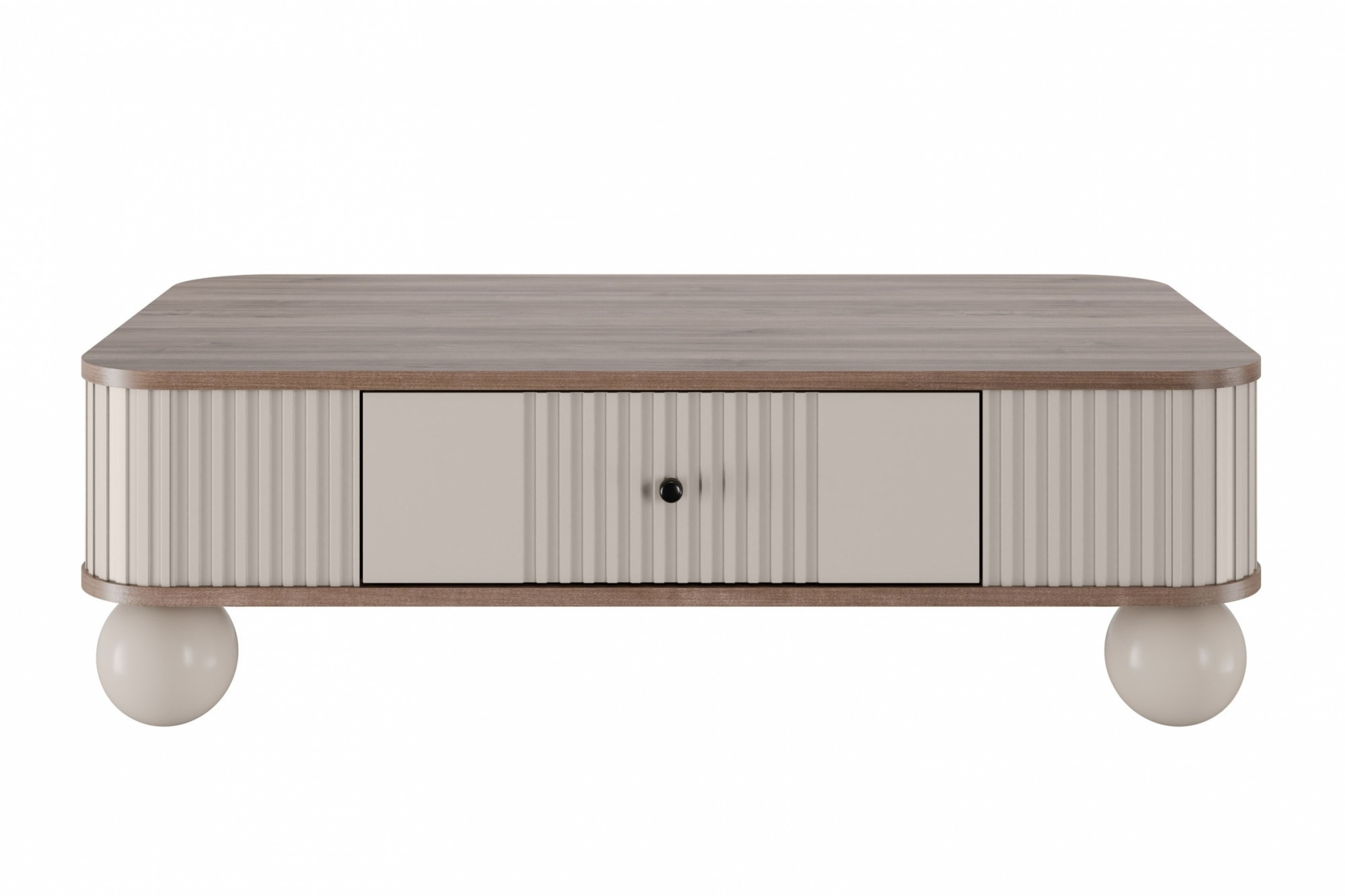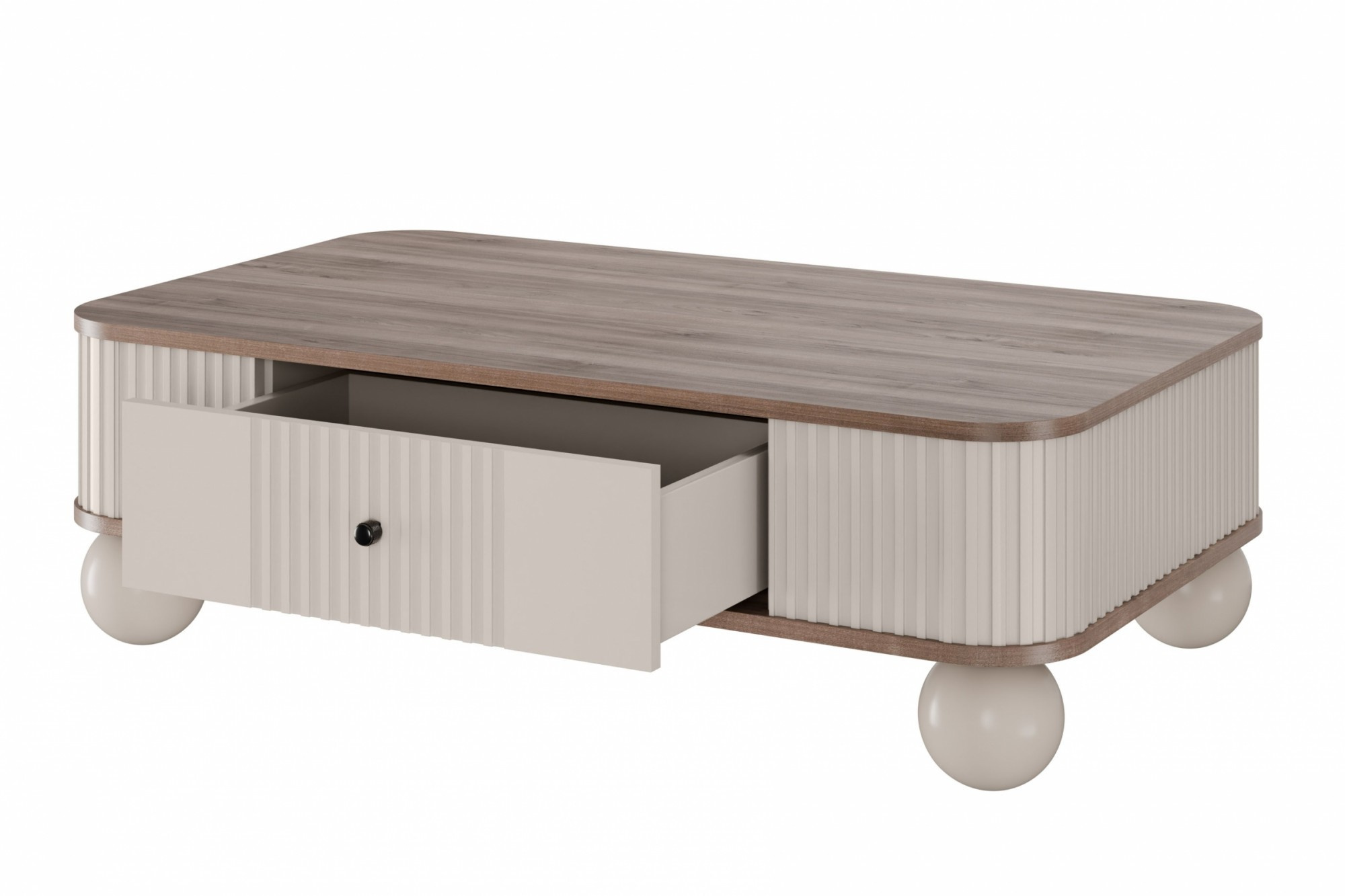 Konferenční stolek se zásuvkou Vesper, kašmír / ořech / černé úchyty