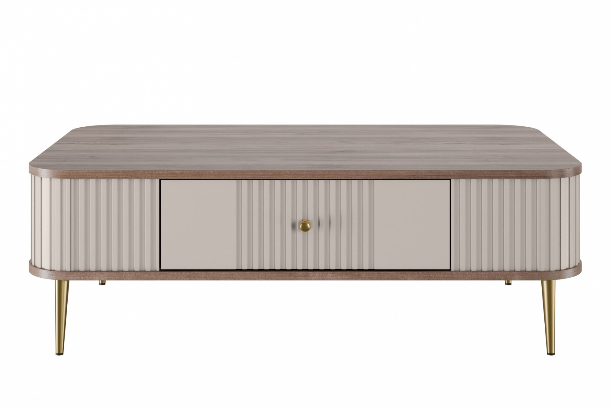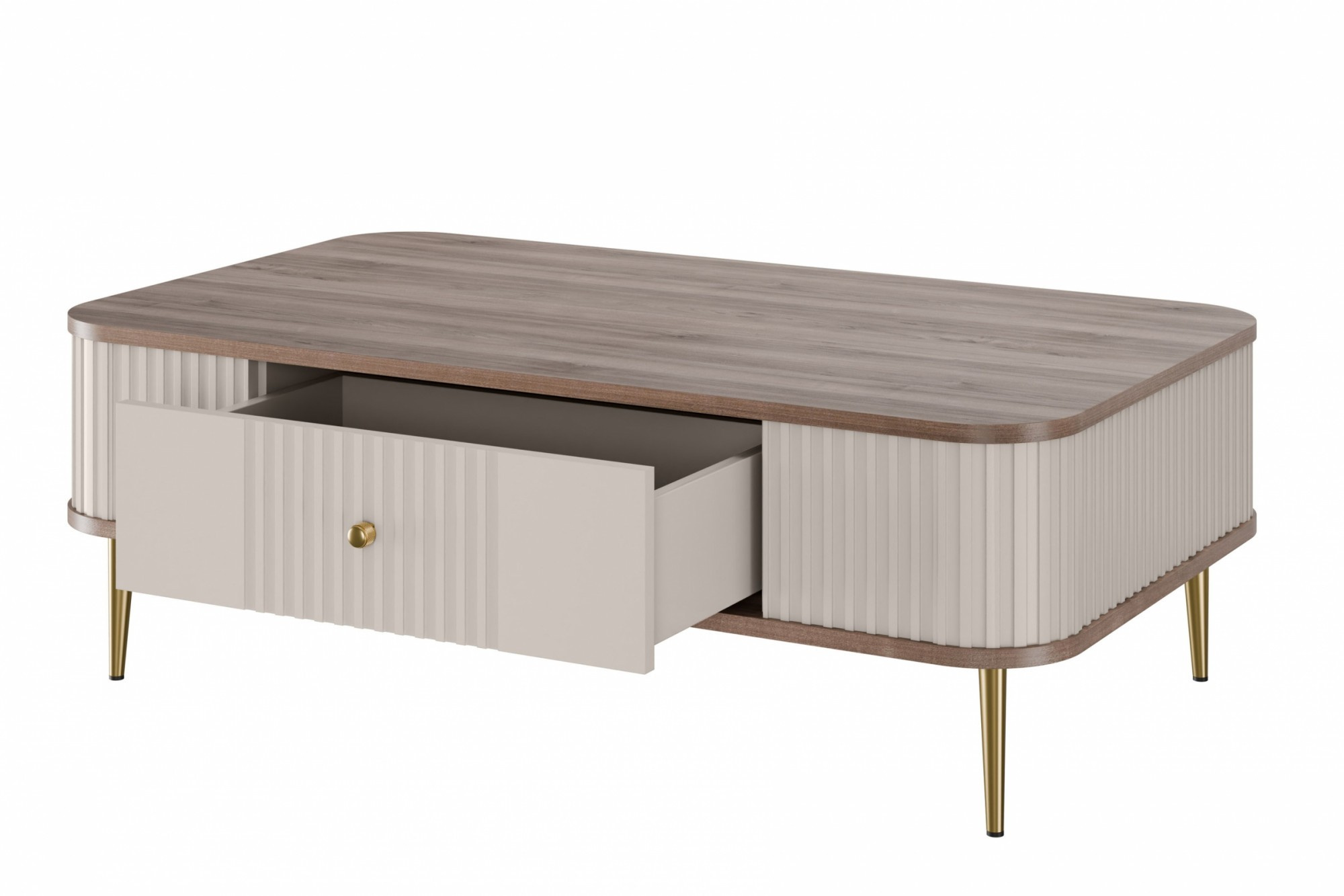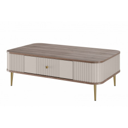 Konferenční stolek se zásuvkou Vesper 103x60 cm - kašmír / ořech / zlaté nohy, Šířka: 103, Výška: 35, Hloubka: 60, Výška nohou: 15, Hloubka desky: , Montáž: