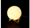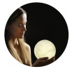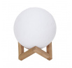 Stolní lampička ve tvaru koule na dřevěném podstavci je bodové osvětlení do pokoje ve skandinávském stylu. Bílý stínidlo lampy je vybaveno vypínačem, díky kterému nejen zapneme lampičku, ale také změníme barvu světla.