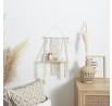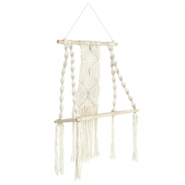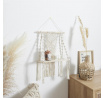 Polička Boho je kombinací bavlněné, pletené konstrukce s borovicovými policemi. Pletená polička ve stylu macramé se hodí do přírodního, světlého interiéru. Maximální zatížení: 5 kg