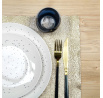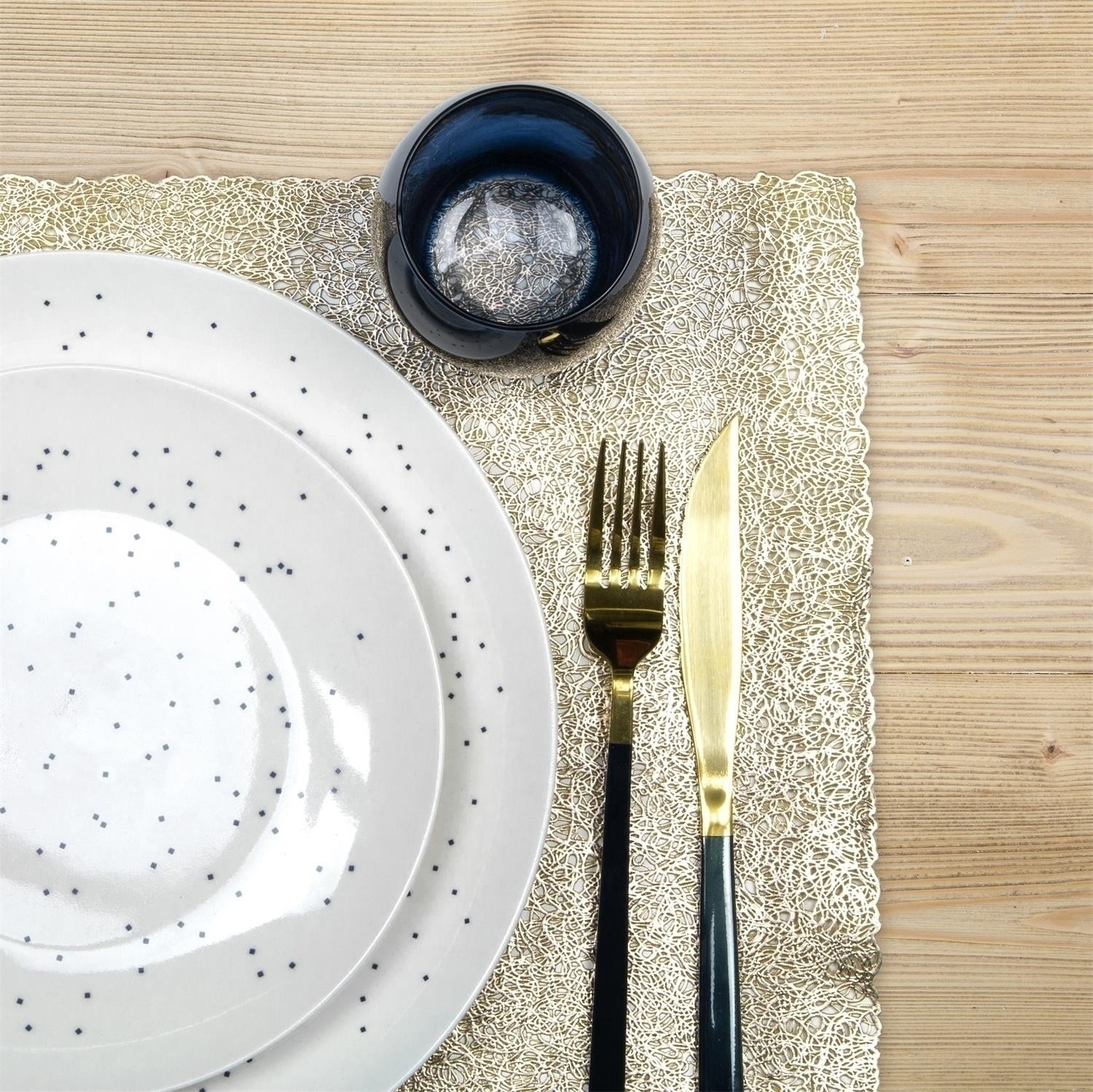 Vyrobená z plastu, podložka připomíná lesklé nitky hustě spletené dohromady. Obdélníková podložka pod talíř umožní zajímavé prostření stolu. Podložka pojme nejen talíř, ale také příbory.
