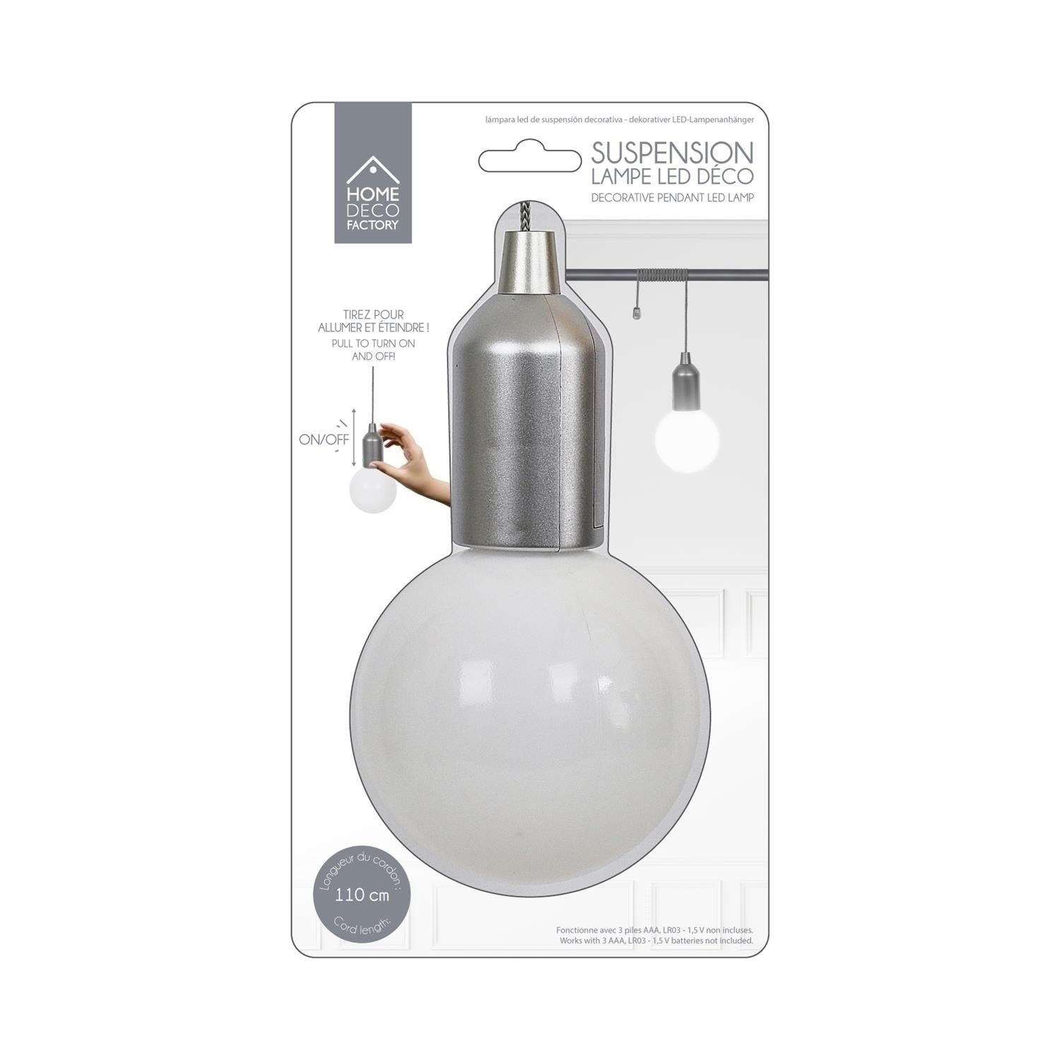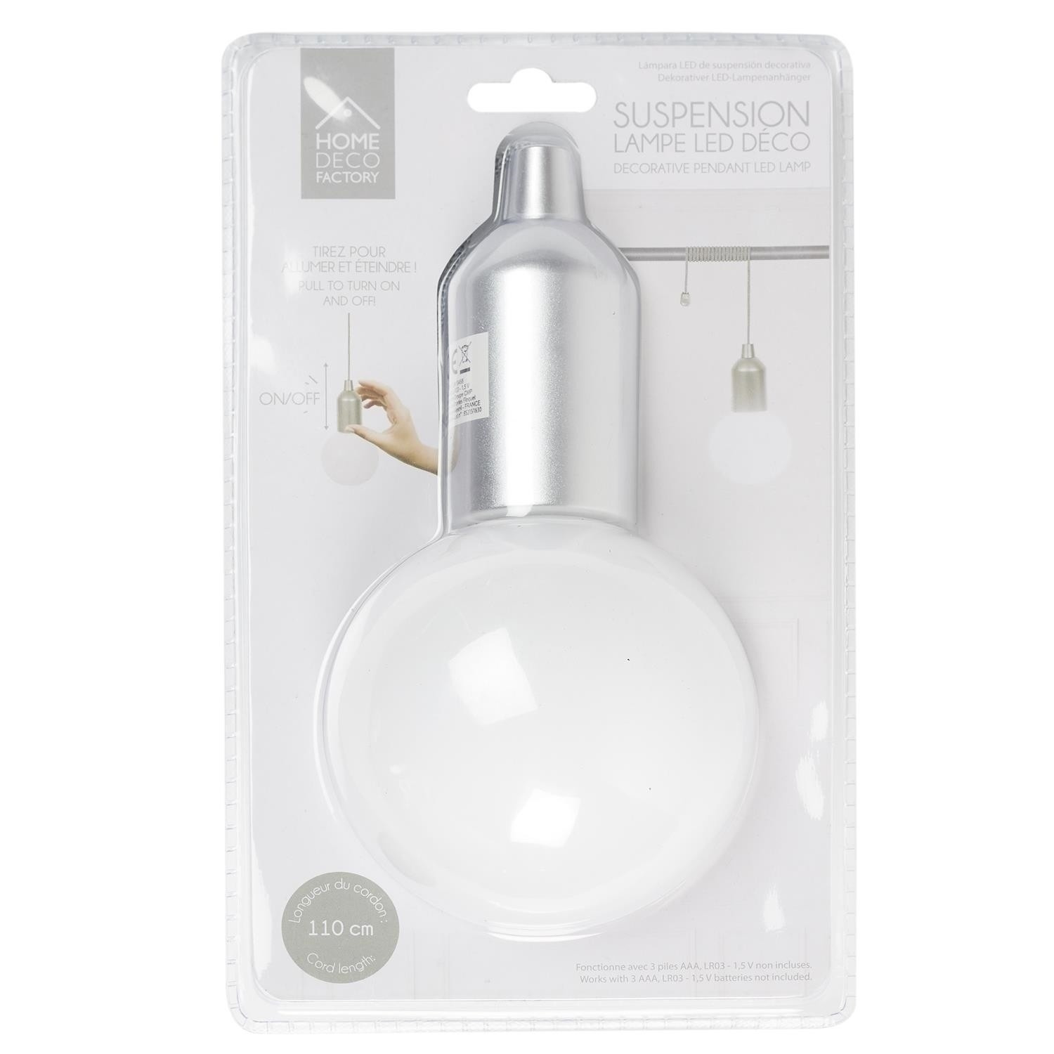 Ledová žárovka na baterie se hodí, když chceme osvětlit koutek, ve kterém nemáme síťové napájení. Lampička s mléčným stínidlem připomínajícím svým tvarem žárovku o průměru 10 cm je snadná na montáž. Stačí ji připevnit pomocí provázku k jakémukoliv prvku. Vypínač lampičky byl umístěn na jejím plastovém prvku. Stačí kliknout, aby ji zapnout. Napájená na baterie (není součástí balení). Délka provázku 110 cm.