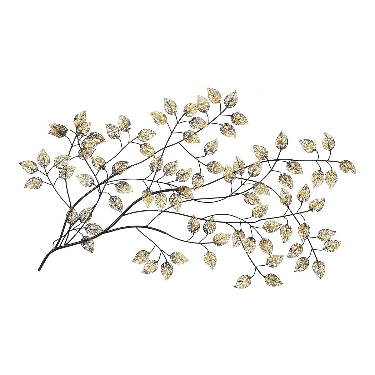 Strom kovový - nástěnná dekorace, špičaté lístky, zlatý