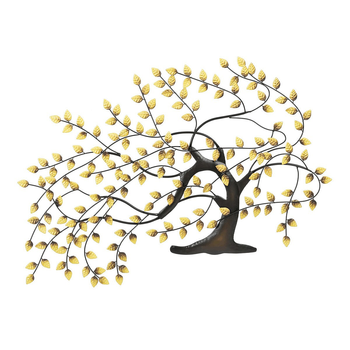 Strom kovový - nástěnná dekorace, špičaté lístky, zlatý