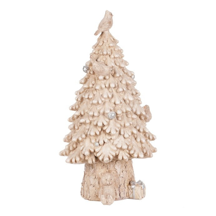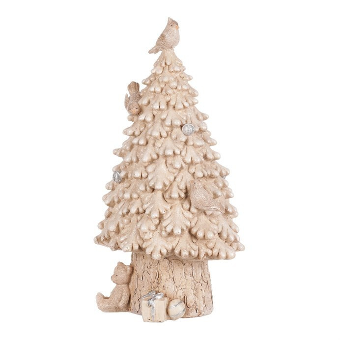Vytvořte si vlastní vánoční pohádku s naší nevšední dekorací v podobě vánočního stromečku z polyresinu. Celá je zahalena do příjemné a zároveň neutrální béžové barvy, která přináší do vašeho domova atmosféru klidu a pohody. Na vrcholu stromku se usadili roztomilí ptáčci, kteří dodávají dekoraci hravý nádech. Medvídek, který se o stromeček opírá, působí jako by čekal na moment, kdy se začne s rozbalováním dárečků. V blízkosti stromku jsou totiž rozmístěny dárky, které slibují radost a očekávání z odhalování toho, co skutečně ukrývají. Tato půvabná vánoční dekorace je určena k postavení a stane se okouzlujícím středem vašeho vánočního interiéru.