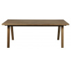 Obdélníkový jídelní stůl A-Line je elegantní kus nábytku, který se dokonale hodí do moderních interiérů. Jeho impozantní rozměry – 200 cm délky, 95 cm šířky a 74,6 cm výšky – zajišťují pohodlné místo pro stolování a společenská setkání. Deska stolu je vyrobena z dubové dýhy, dokončené kouřovým PU lakem, který zdůrazňuje přirozenou krásu dřeva a zároveň zajišťuje trvanlivost a odolnost proti poškození. Stabilní základna z dubové dýhy, pokrytá kouřovým NC lakem, harmonicky doplňuje celek. Dodatečně je stůl vybaven deskami a přípravou pro prodloužení desek, což umožňuje snadné zvětšení jeho plochy, přizpůsobujíc ho potřebám většího počtu hostů. To je ideální volba pro osoby, které si cení spojení funkčnosti s elegancí.