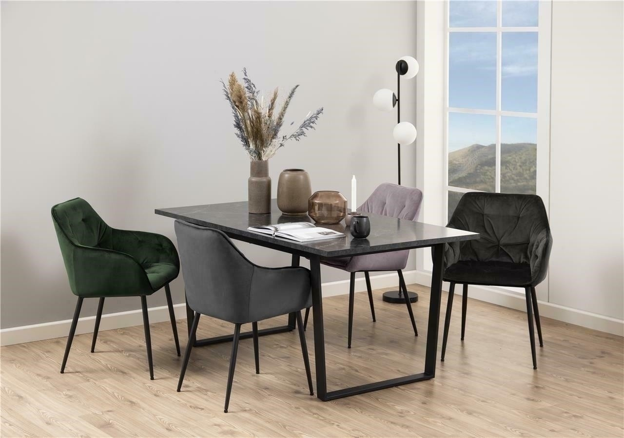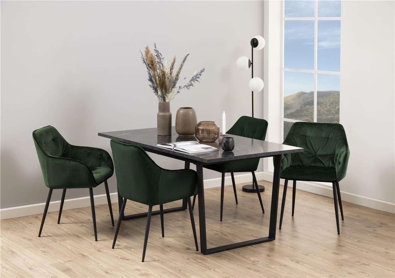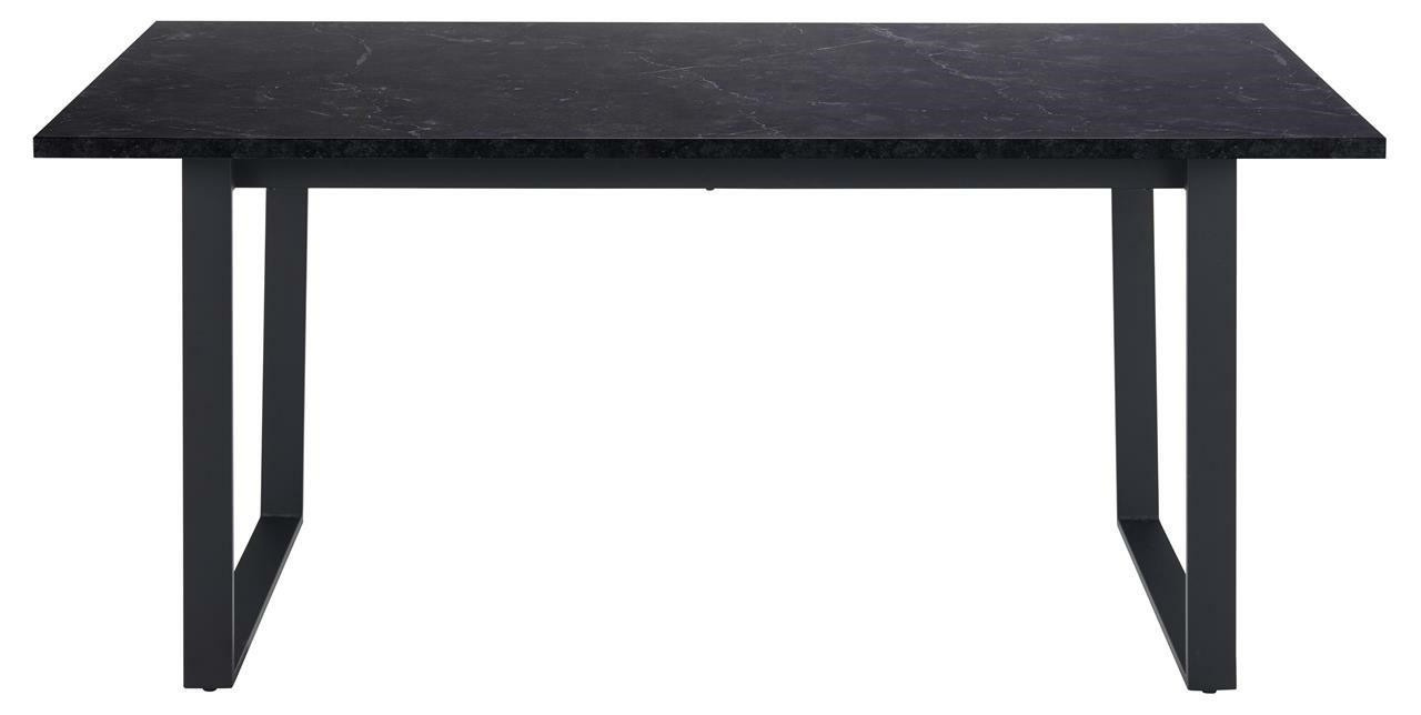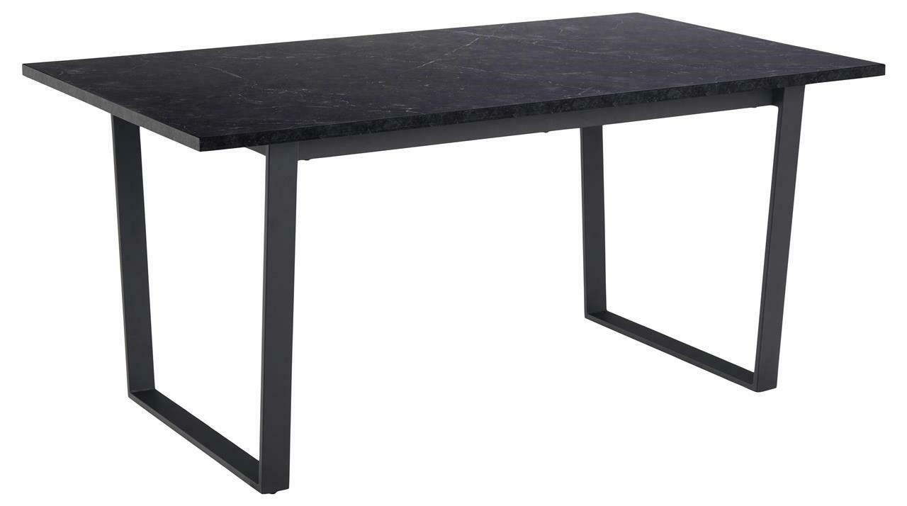 Moderní, obdélníkový stůl Amble v loftovém stylu je zajímavý stůl, který se nejlépe hodí k sametovým židlím. Zajímavá deska z odolného proti poškrábání MDF, navíc laminovaná dýhou imitující černý mramor, dokonale ladí s černou kovovou základnou. Práškově lakované, kovové nohy stolu mají tvar lyžiny. Matný povrch stolu bude dobře ladit s interiéry ve stylu loft nebo industriálním. Stůl Amble se hodí do malého obývacího pokoje nebo jídelny. Stůl Amble díky své jednoduché formě bude ideální ke křeslům s područkami.Rozměry balení: 172x10,5x99,5cm Hmotnost: 38kg