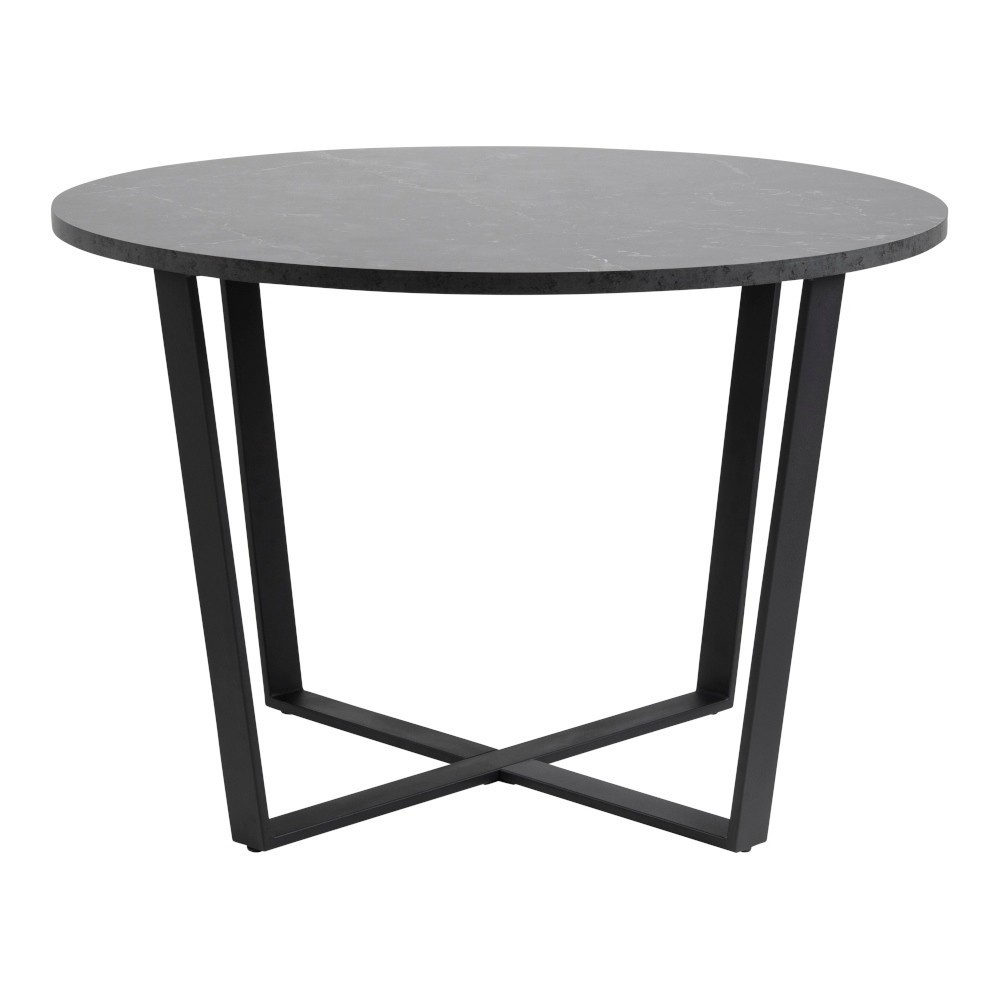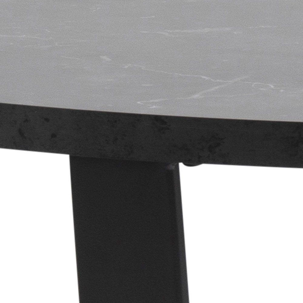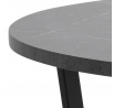 Stůl Amble byl vyroben z MDF desky ozdobené dýhou imitující mramor a z černě práškově lakovaného kovového podstavce. Stůl zapadá do stylu glamour. Kulatá deska stolu se dokonale hodí k geometrické základně. Nohy stolu připomínají zužující se lyžiny, které se kříží uprostřed. Hmotnost: 25 kg. Rozměry kartonu: 13cm x 121cm x 118cm