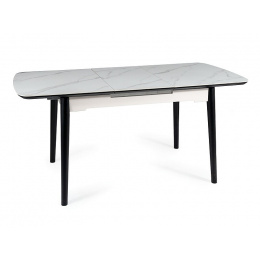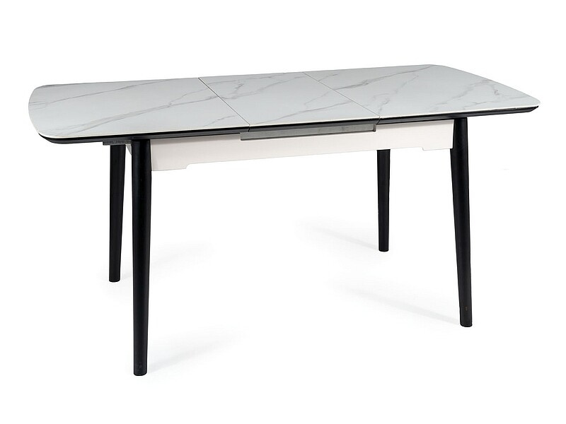 Jídelní stůl APOLLO 150(190) cm, Efekt bílého mramoru/Černý mat