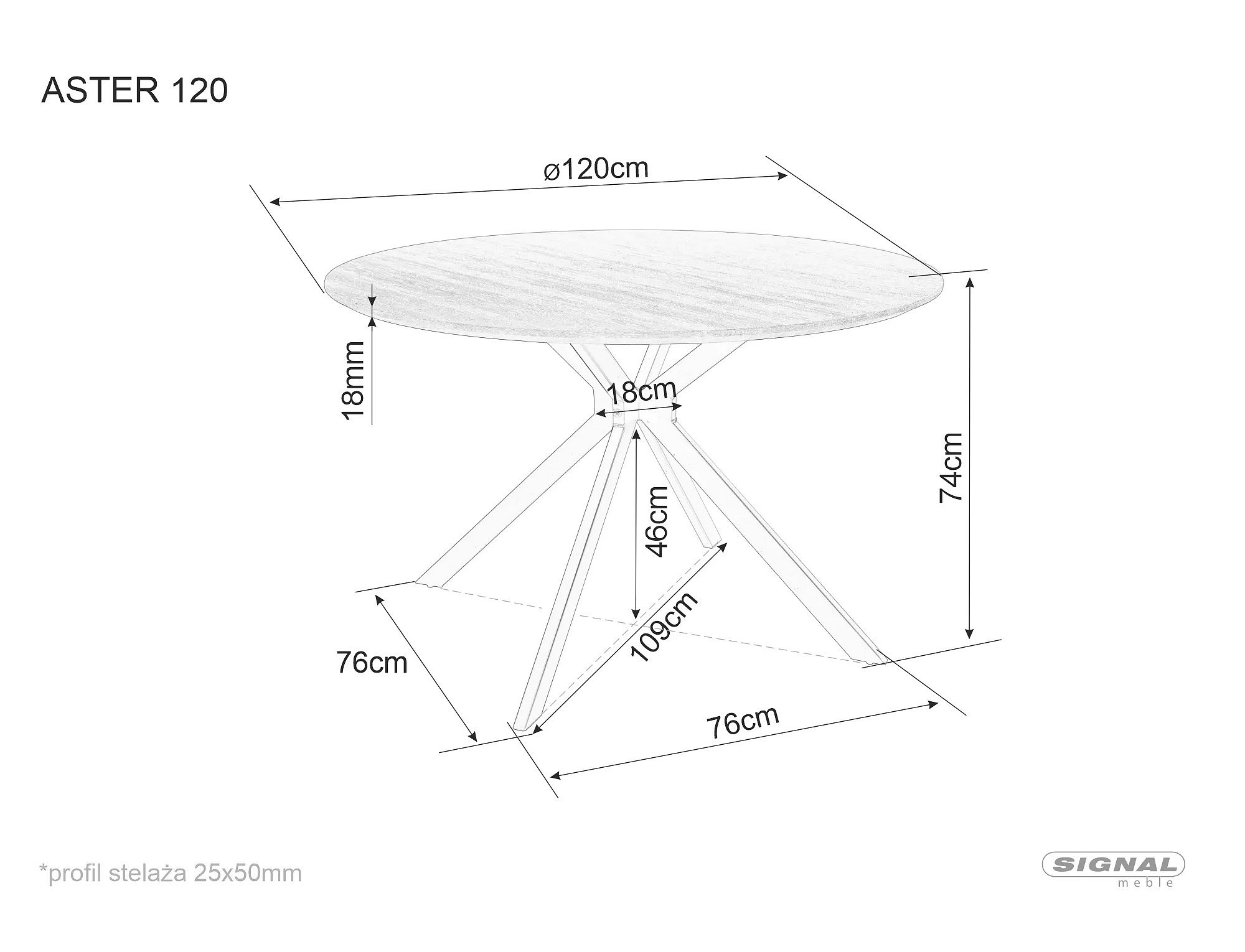 Jídelní stůl ASTER 120 cm, Dub/Černý mat