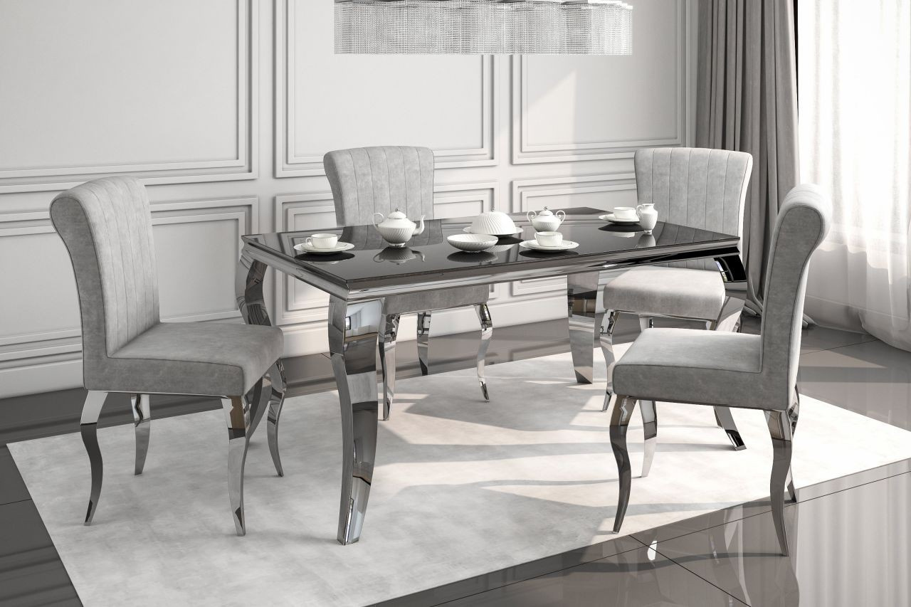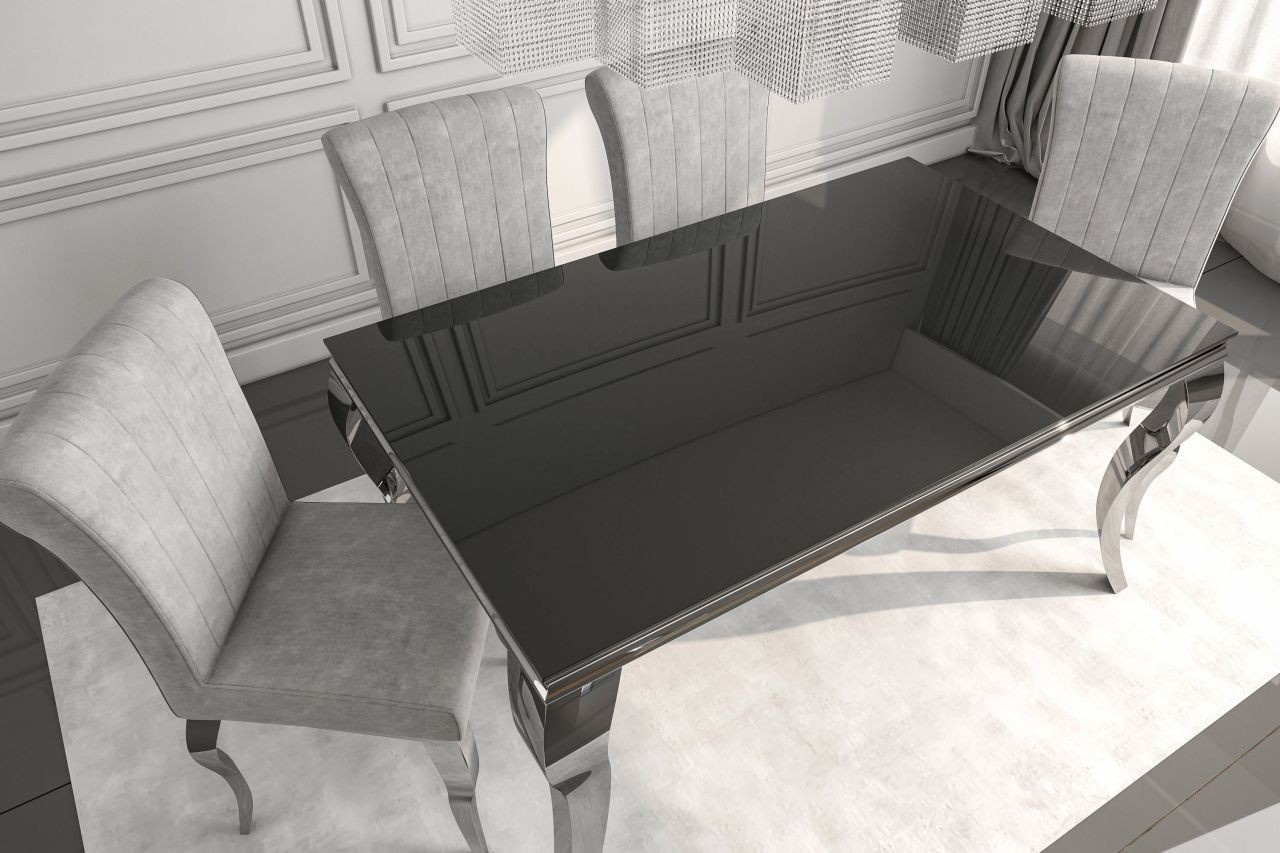 Kovové nohy v chromovém provedení poskytují stolu potřebnou stabilitu a zároveň přidávají na jeho vizuální atraktivitě. Kombinace černé a chromu je nadčasová a snadno se kombinuje s dalšími prvky v místnosti. Díky použití kovu je stůl nejen stabilní, ale také odolný vůči každodennímu opotřebení.