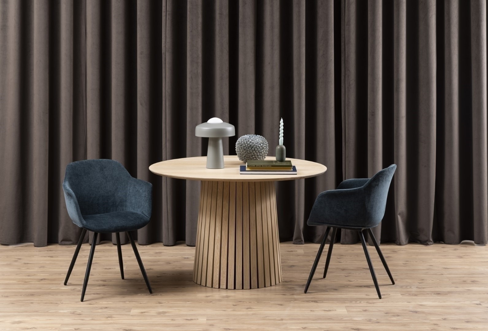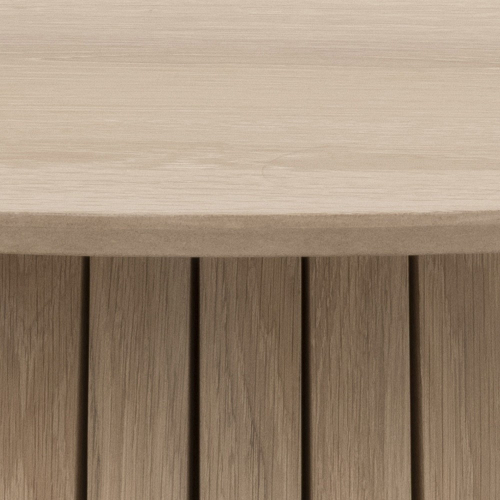 Stůl Christo je výjimečný projekt s netypickým designem. Má kulatou desku o průměru 120 cm a základnu ve tvaru válce složeného z vertikálních lamel. Stůl je celý vyroben z bělené dubové dýhy. Jeho minimalistická forma a neutrální barva z něj činí ideální doplněk interiérů s velmi různorodými výzdobami. Stůl se hodí jak do elegantní restaurace, tak do jídelny zařízené ve skandinávském nebo boho stylu. Počet kartonů: 2 Rozměry kartonů: 129x129x5cm 68x68x80cm Hmotnost kartonů: 18,4kg 28,1kg