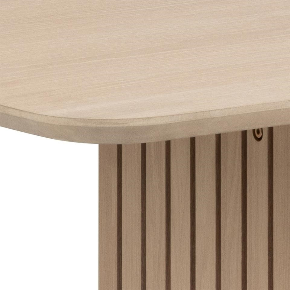 Díky stolu Christo v jídelně vytvoříte atmosféru pro skvělé kulinářské zážitky během společných jídel s rodinou nebo přáteli. Obdélníková, prostorná deska z MDF a s dýhou z běleného dubového oleje vytváří teplou atmosféru, stejně jako základna s lamelovými čely. Tento stůl je ideální pro každého, kdo si cení skandinávského designu nábytku. Díky svým rozměrům bude ideální až pro 8 osob. Vyžaduje samostatnou montáž. Rozměry kartonů: 115x230x8cm a 76x84x13cm váha: 49,5 a 3.7 kg
