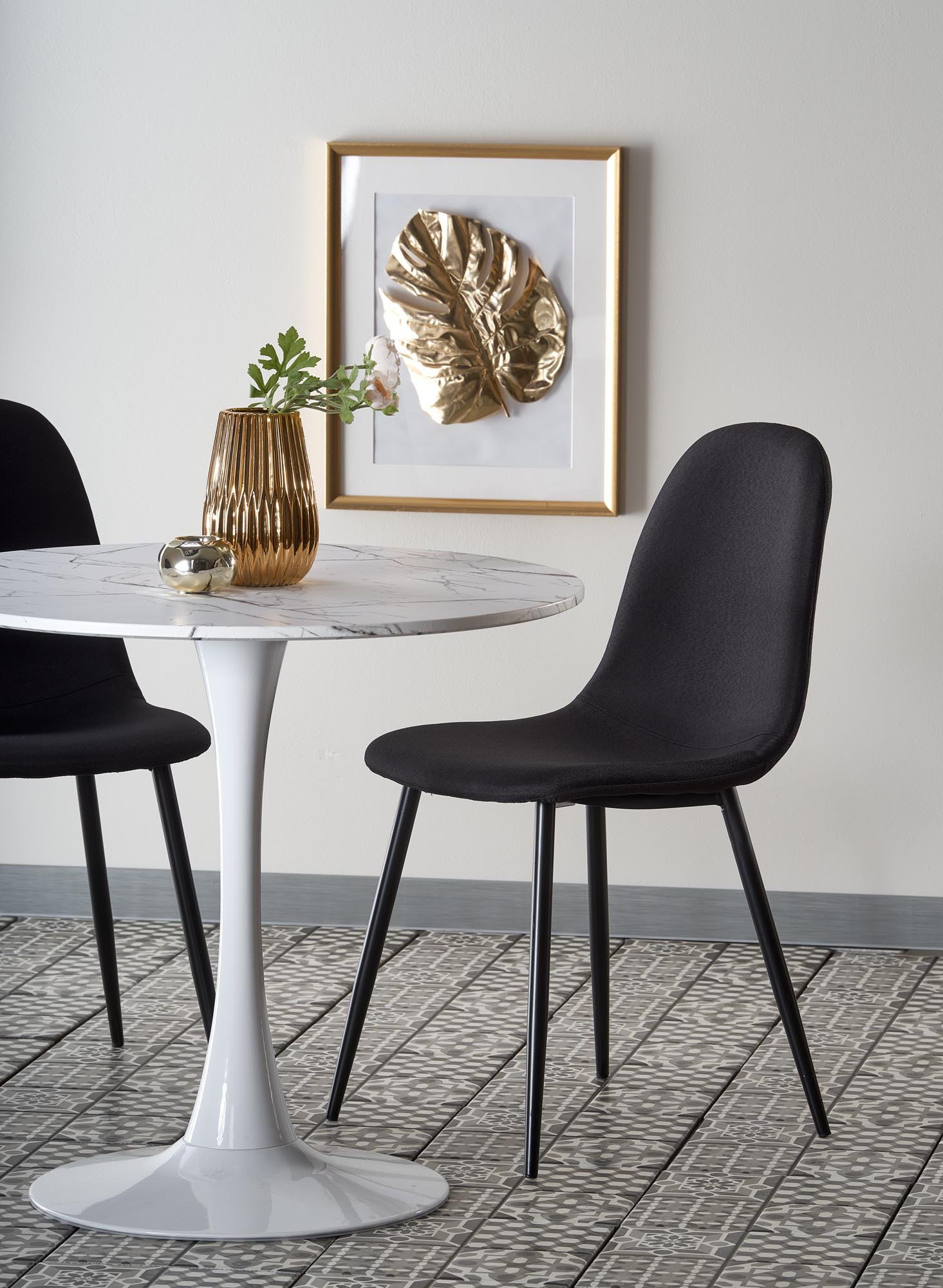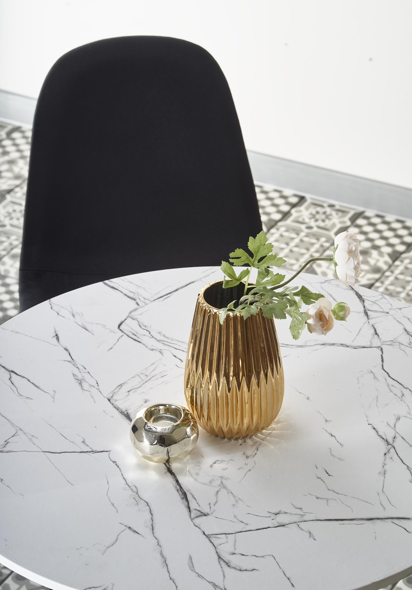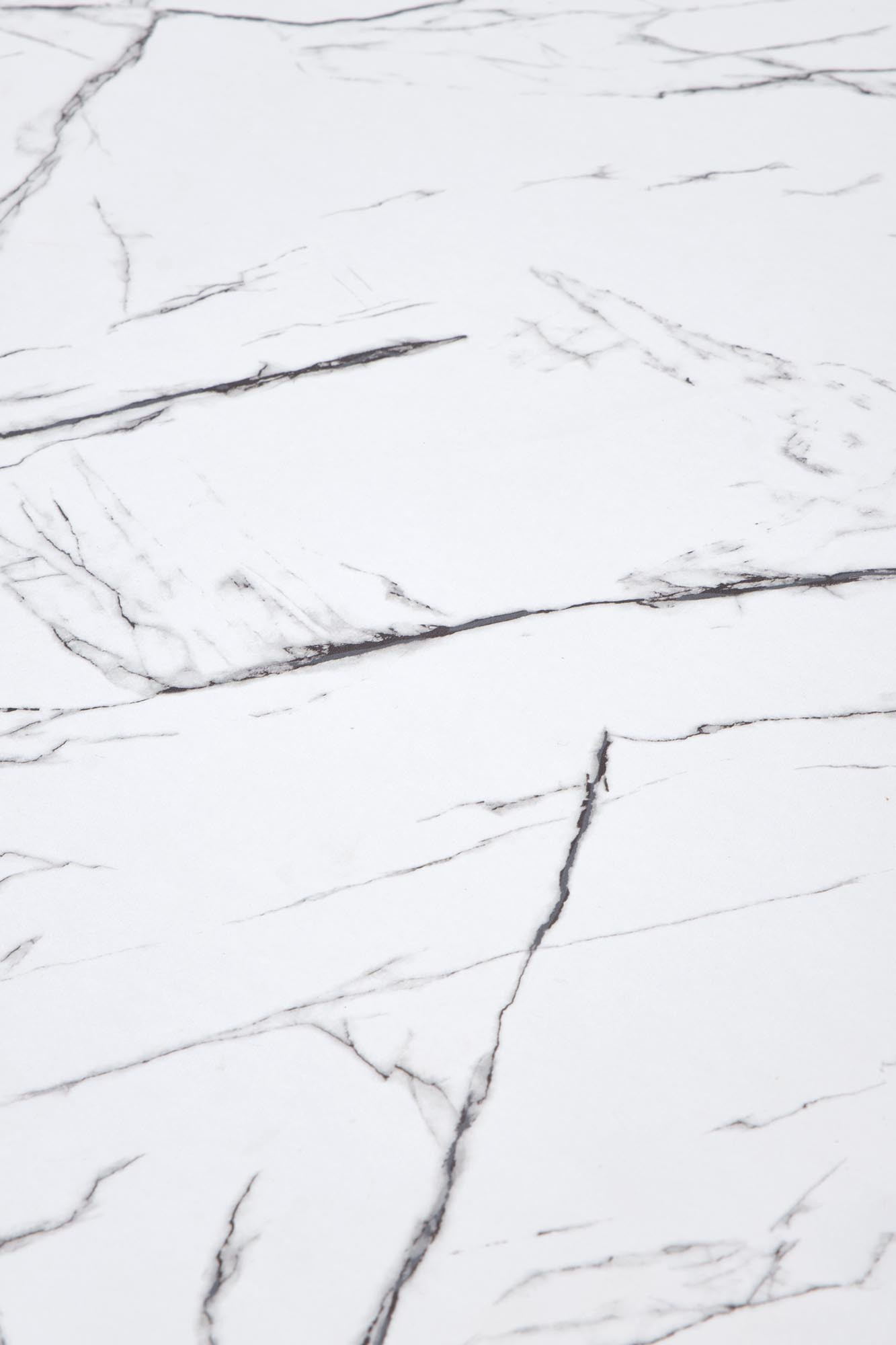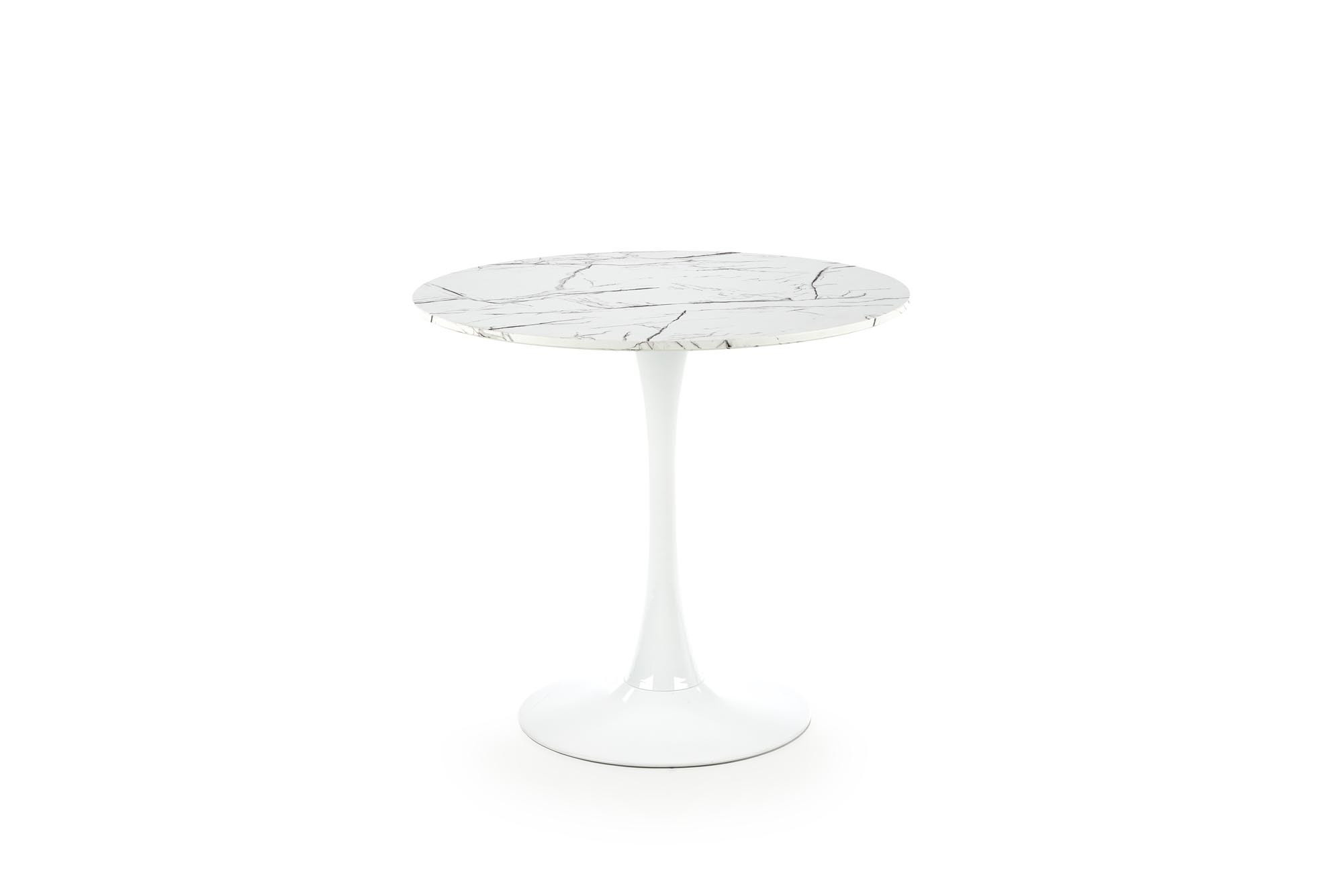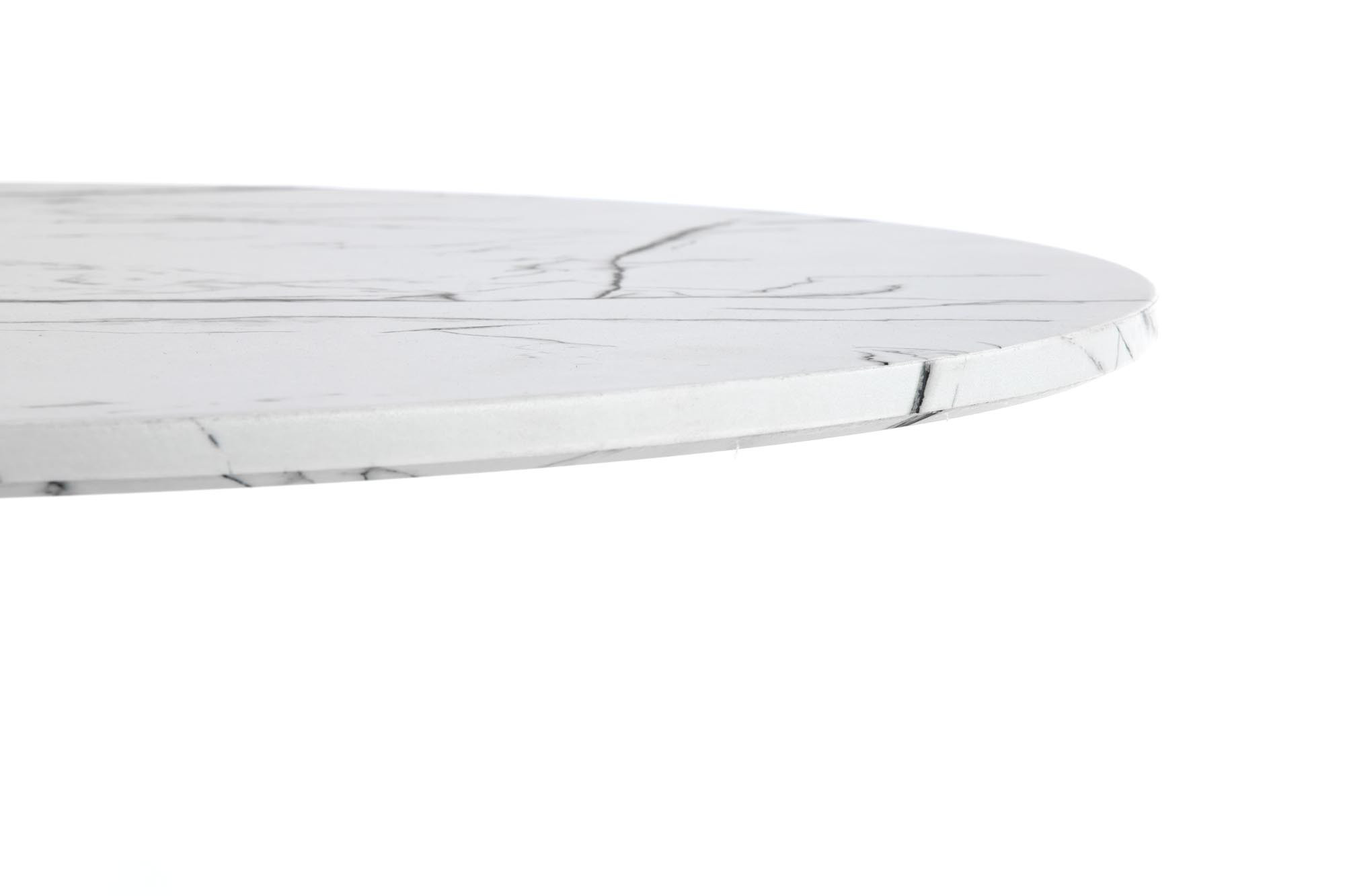 rozměry: fi 80/73 cm, materiál: MDF dýha / práškově lakovaná ocel, barva: horní deska - bílý mramor, noha - bílá