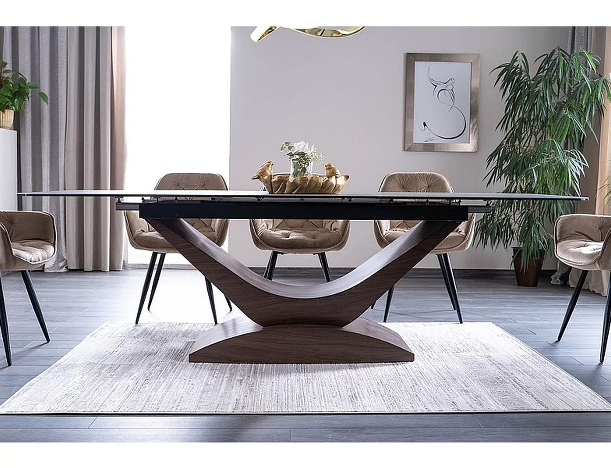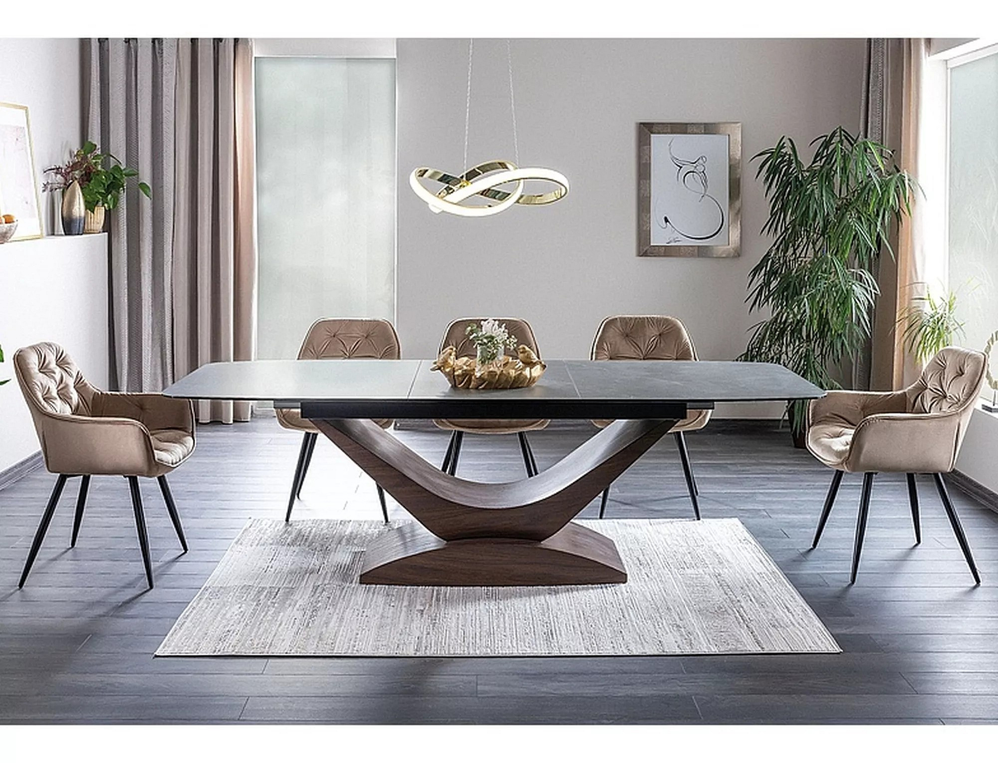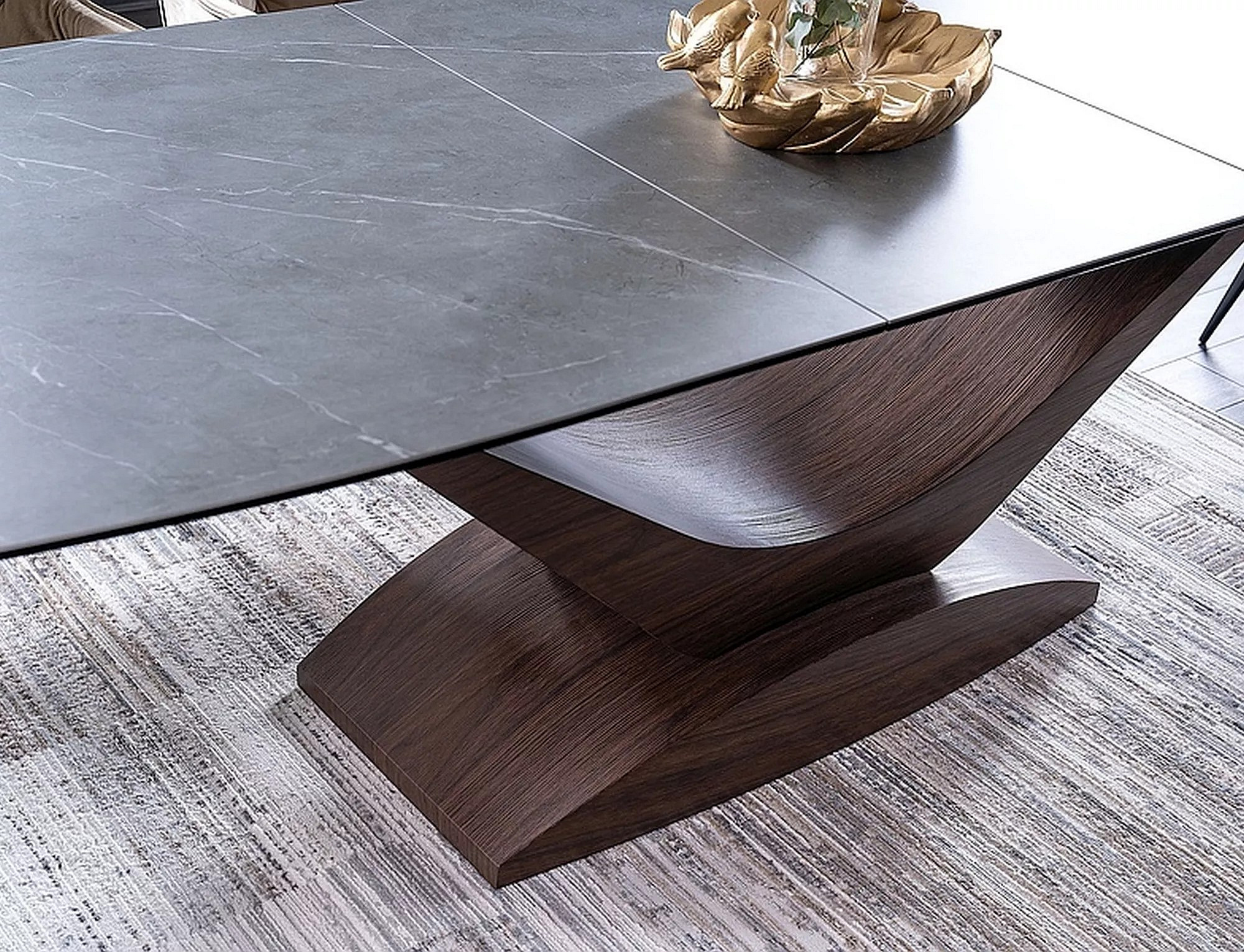 Jídelní stůl DOLCE KERAMIKA, efekt šedého mramoru/ořech
