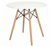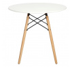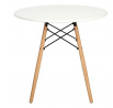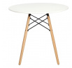 Neobyčejný stolek klasického tvaru. Deska stolu je vyrobena z lakované MDF desky. Základna je vyrobena z bukového dřeva a kovových spojů lakovaných na černo, které kontrastují s bílou deskou stolku.