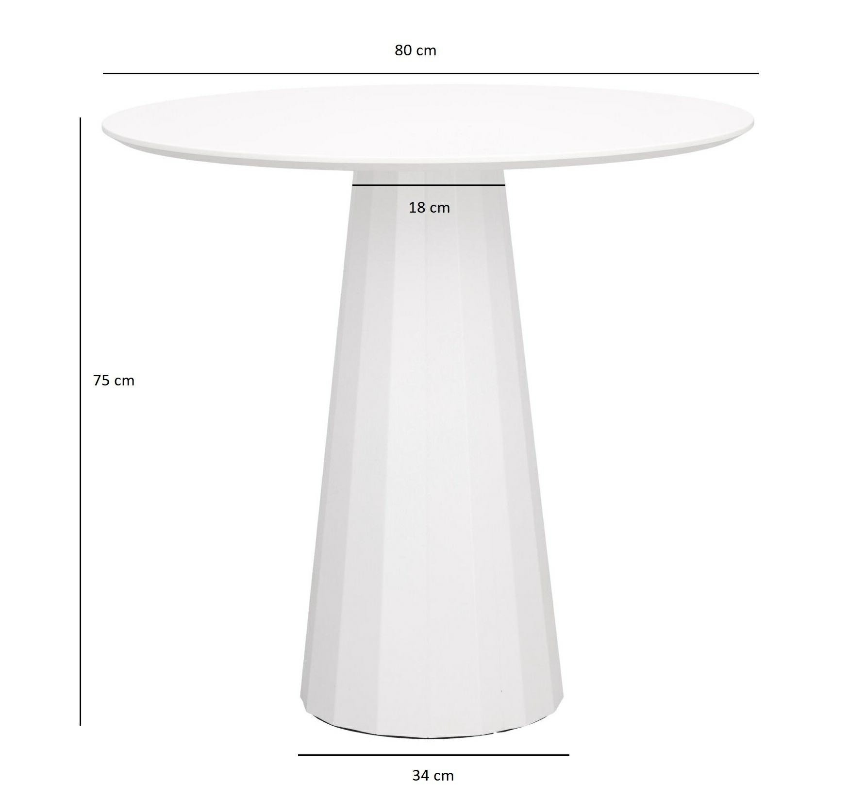 Nadčasový stůl Florero na jedné noze je projekt, který osloví všechny, kteří si cení univerzální řešení a zajímavý styl. Stůl na jedné noze, která díky svému vroubkovanému povrchu dodává celému nábytku mimořádně zajímavý vzhled. Noha stolu, mírně se rozšiřuje směrem dolů, dosahuje průměru 34 cm na samém spodku. Završením nábytku je deska z MDF desky v hladké dýze. Deska MDF se vyznačuje pevností a odolností vůči teplotě. Kulatá deska stolu nemusí být chráněna před teplými talíři nebo hrnky, protože jí nehrozí spálení, jako je tomu u dřevěných desek. Průměr bláta je 80 cm, zatímco jeho tloušťka je 2 cm. Stůl vyžaduje montáž. Max. zatížení stolu: 70 kg. Rozměry kartonů: 88x88x8 cm a 41,5x41,5x75 cm