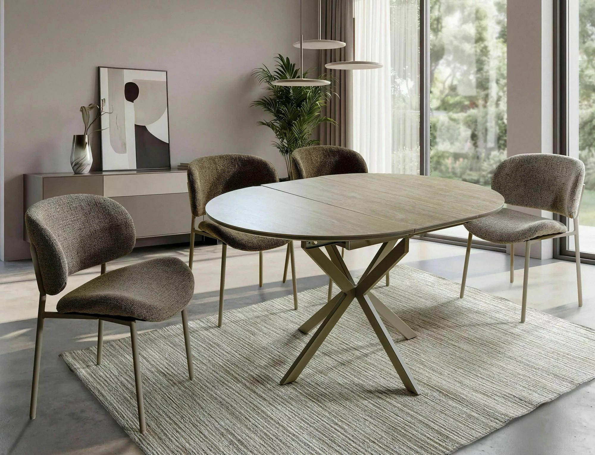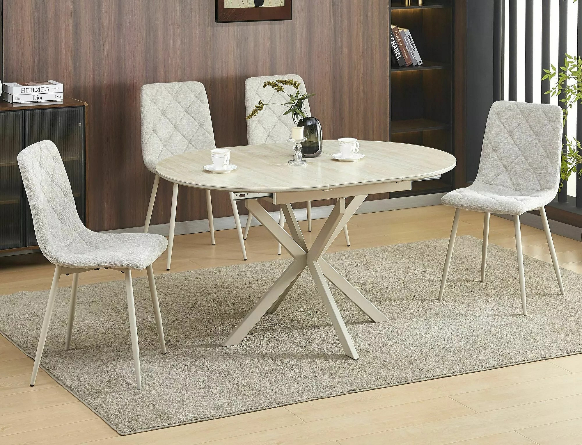 STŮL GASTON KERAMICKÝ TRAVERTIN/KAŠMÍR 100(135)X100