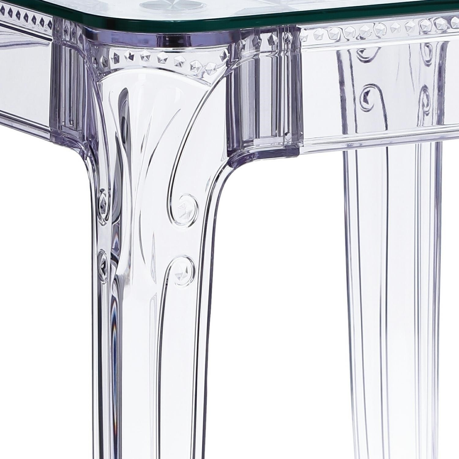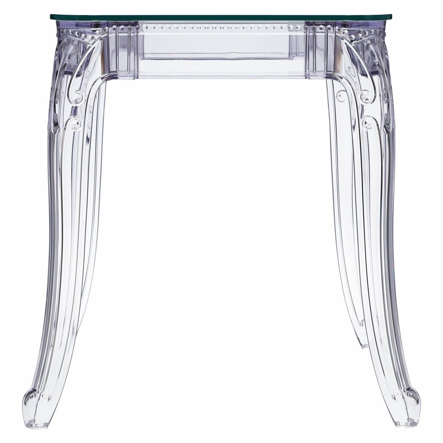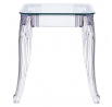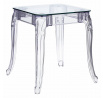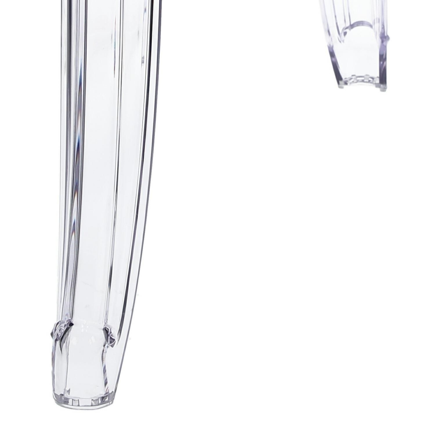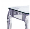 Stůl Ghost je kombinací klasické až barokní formy a moderní techniky a odolných materiálů. Stůl Ghost má skleněnou desku o tloušťce 10 mm, kterou podpírají bohatě zdobené polykarbonátové nohy. Polykarbonát je velmi odolný materiál s širokým využitím. Díky tomu, že nohy stolu byly vyrobeny z umělé hmoty, jsou odolné vůči mechanickému poškození, poškrábání a vlhkosti. Ghost je dokonalý stůl do malé jídelny, kuchyně nebo obývacího pokoje. Průhledná forma nábytku způsobuje, že nezahlcuje místnost, naopak odráží světlo a interiér se zdá být větší. Stůl je k dispozici ve dvou velikostech. Tloušťka desky: 10 mm Tloušťka nohou: od 5 do 8,5 cm Rozměry kartonu: 80x20x22 cm