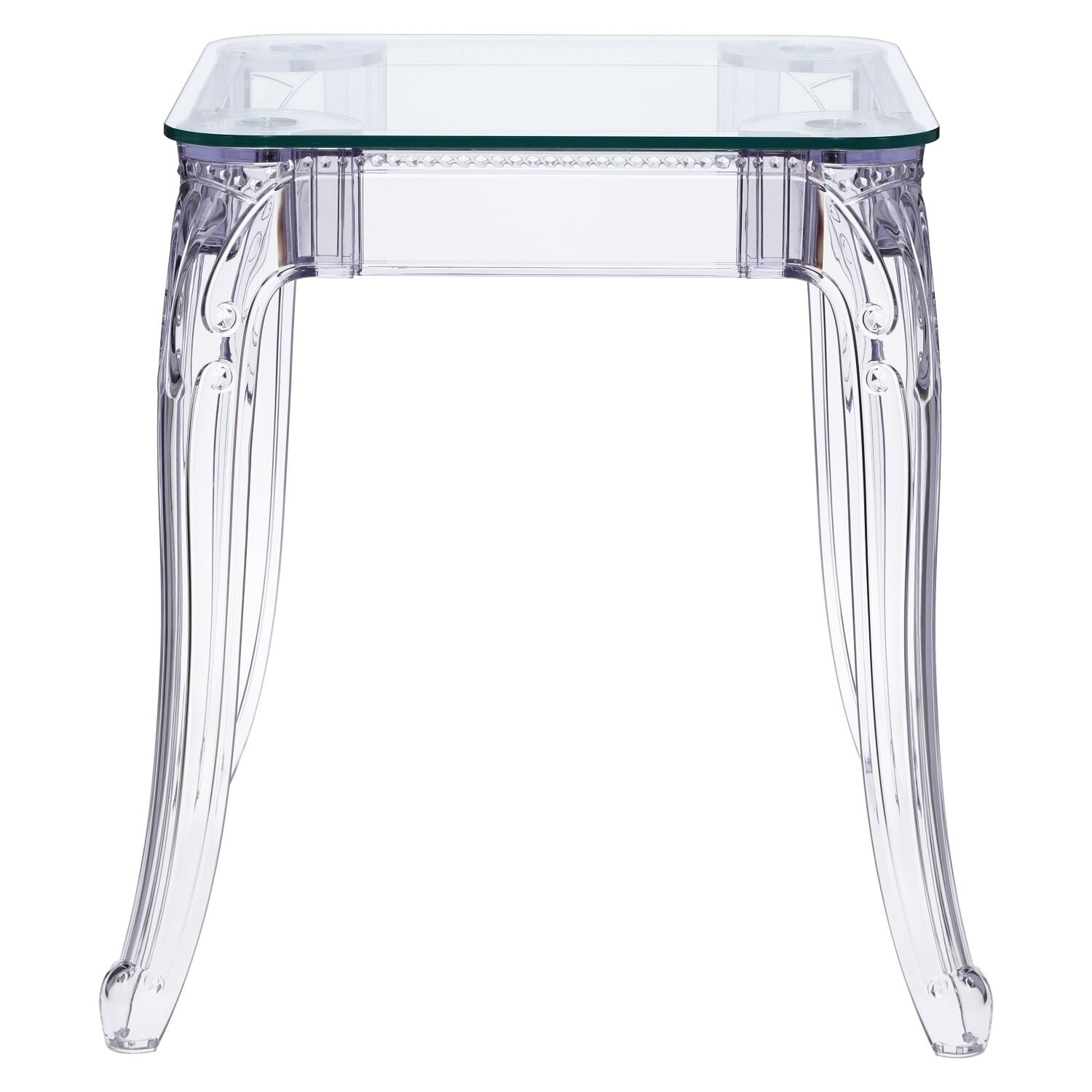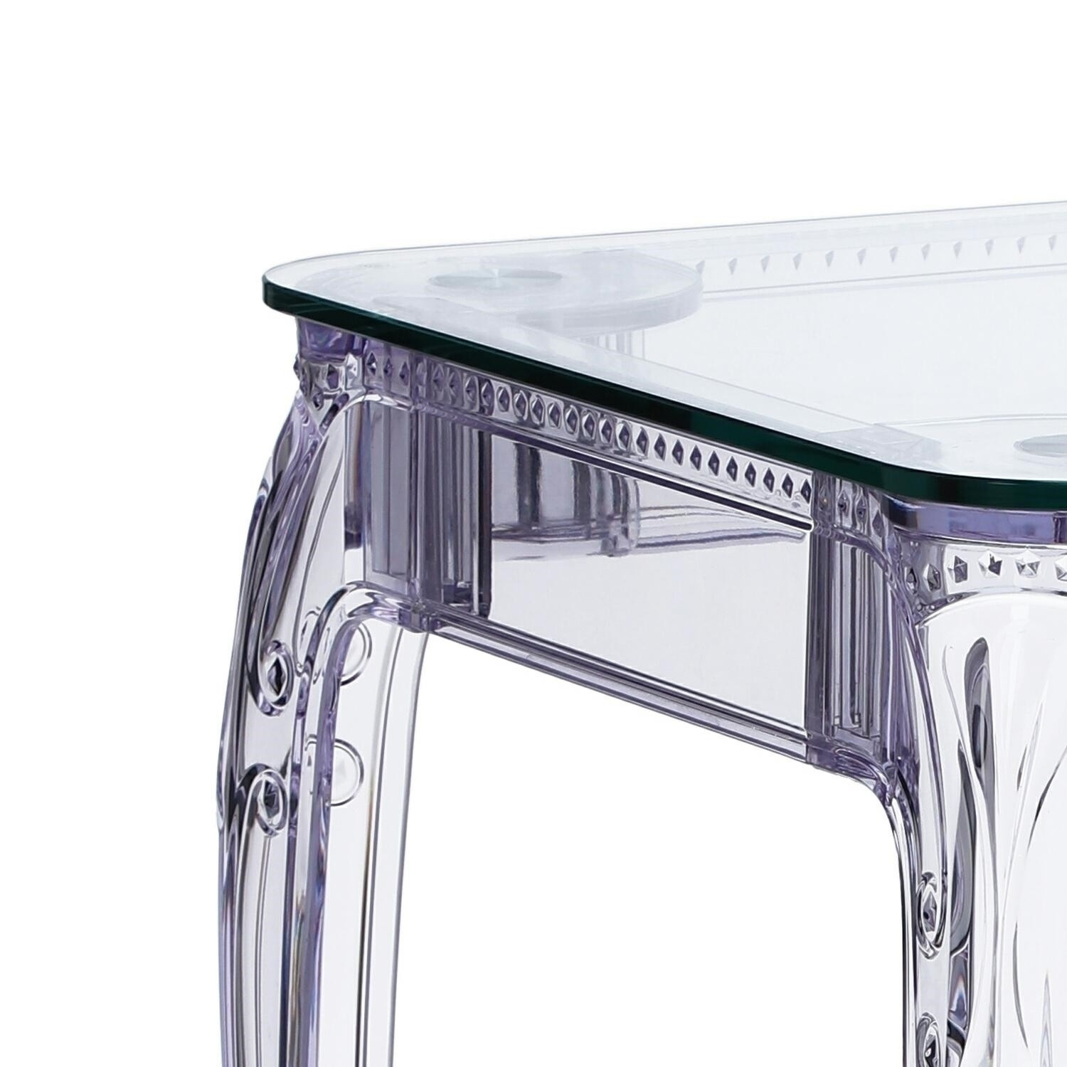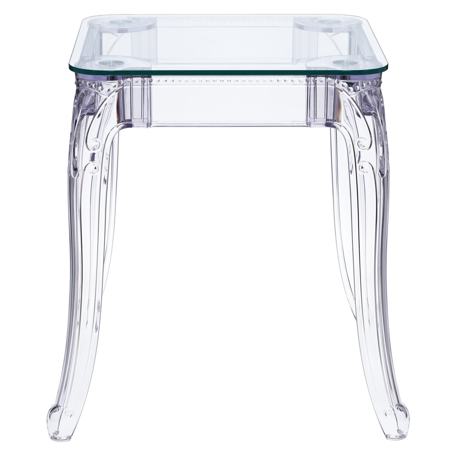 Stůl Ghost je kombinací klasické až barokní formy a moderní techniky a odolných materiálů. Stůl Ghost má skleněnou desku o tloušťce 10 mm, kterou podpírají bohatě zdobené polykarbonátové nohy. Polykarbonát je velmi odolný materiál s širokým využitím. Díky tomu, že nohy stolu byly vyrobeny z umělé hmoty, jsou odolné vůči mechanickému poškození, poškrábání a vlhkosti. Ghost je dokonalý stůl do malé jídelny, kuchyně nebo obývacího pokoje. Průhledná forma nábytku způsobuje, že nezahlcuje místnost, naopak odráží světlo a interiér se zdá být větší. Stůl je k dispozici ve dvou velikostech. Tloušťka desky: 10 mm Tloušťka nohou: od 5 do 8,5 cm Rozměry kartonu: 80x20x22 cm