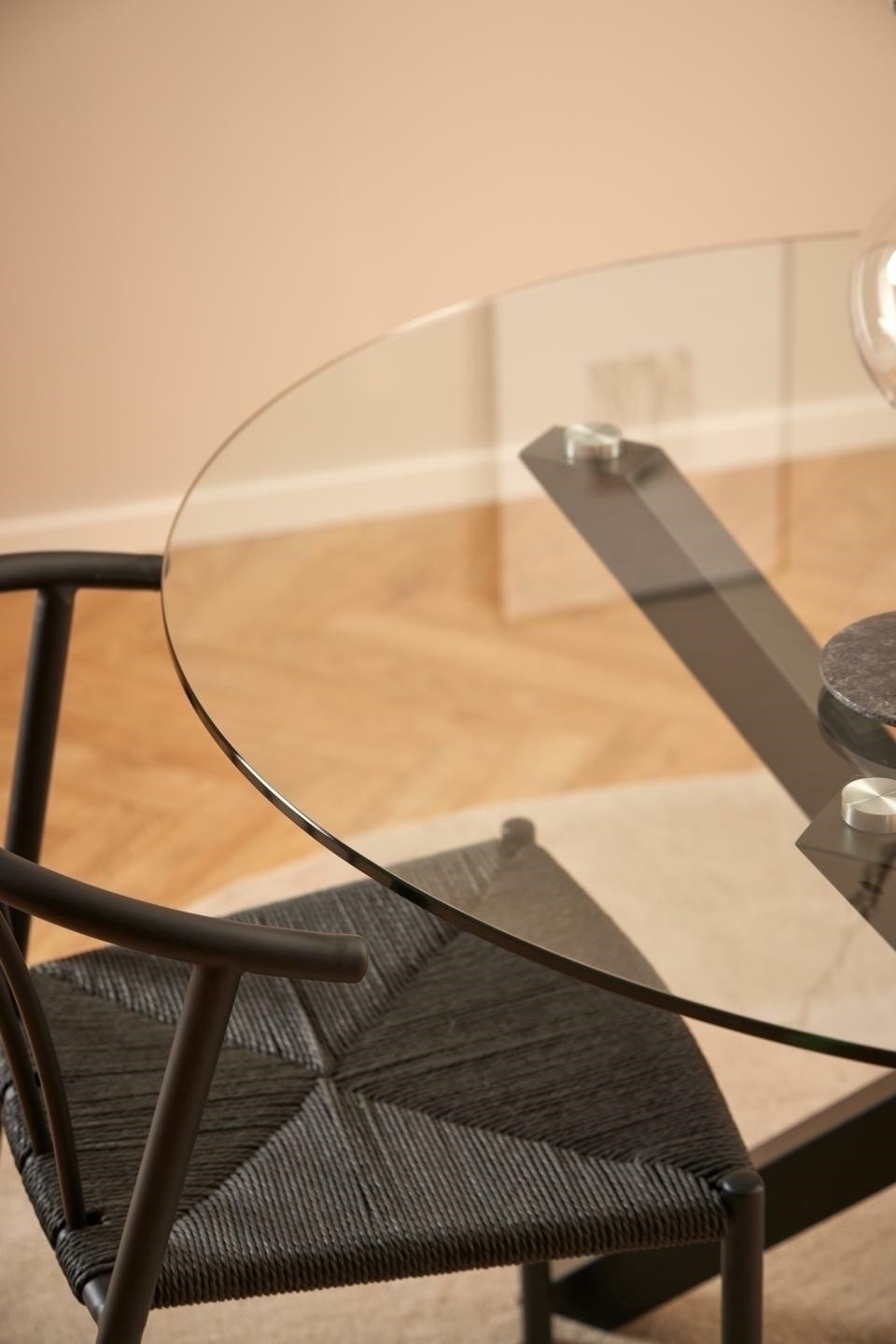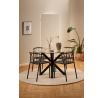 Kulatý stůl do jídelny Heaven, deska z průhledného tvrzeného skla, křížová základna z matné, hrubé oceli lakované práškovou barvou na černo. Tento kulatý jídelní stůl poskytuje místo pro vychutnávání neformálních jídel a rozhovorů u kávy, i v malých jídelnách a kuchyňských koutech. Deska z průhledného tvrzeného skla je osazena na sochařském podstavci z černé, hrubé oceli lakované práškovou barvou, což jí dodává architektonický vzhled. Hmotnost 39 kg, Max zatížení 100 kg. Vyžaduje montáž. Rozměry kartonů: 127,5x127,5x5cm a 76x73x7cm