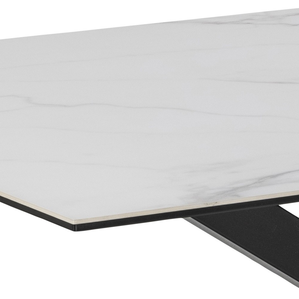 Velký stůl Heaven bude ozdobou vašeho domova a místem rodinných setkání. Díky svému unikátnímu charakteru se nábytek skvěle představí v každé moderní jídelně či kuchyni. Ideálně se hodí do industriálních, loftových aranžmá, ale také do více klasických interiérů, kde bude tvořit výjimečný doplněk.Industriální stůl s krásnou keramicko-skleněnou deskou a kovovou základnou natřenou na černo umožní hodování ve velkém rodinném kruhu. Konstrukce je založena na kovovém rámu geometrického tvaru a je zakončena deskou z bílé keramiky a skla. Díky své velké velikosti může stůl pohodlně pojmout až 8 osob. Hmotnost stolu: 57 kg Rozměry balení: 166x96x6 cm a 86x79x7 cm