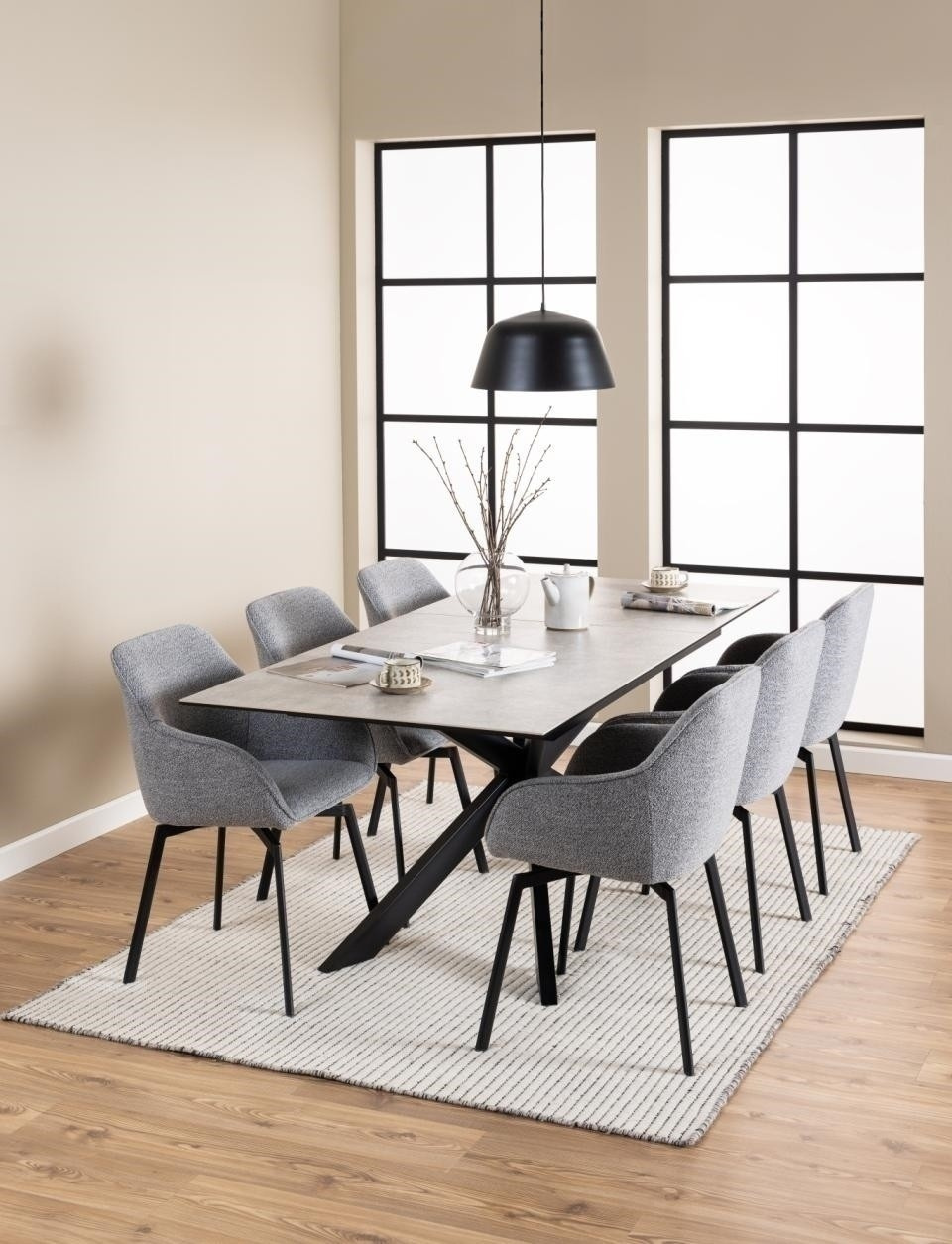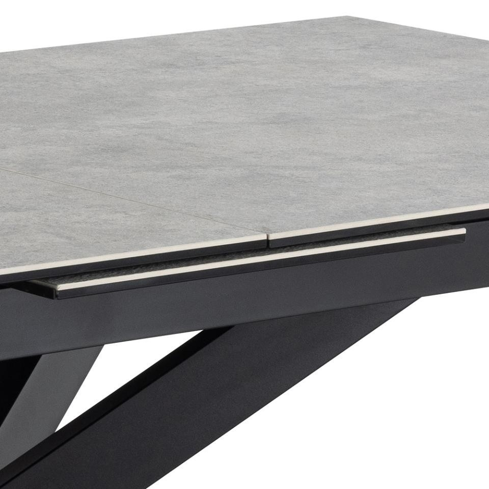 Vybaven šedou keramickou deskou, povrch tohoto stolu vypadá dobře, je odolný vůči teplu a poškrábání a může být snadno prodloužen díky synchronnímu prodloužení desky. Stačí jemně zatáhnout za konec stolu a další deska se vysune a objeví se uprostřed. Celý komplet doplňuje černý ocelový podstavec. Zajímavá konstrukce základny, která celku dodává nadčasový efekt. Výrazný jídelní stůl s šedou deskou. Odolná proti teplu a poškrábání keramika na desce. Synchronně vysouvatelné křídlo z ladící šedé keramiky. Základna kříže vyrobená z černé oceli lakované práškovou barvou pro dosažení působivého efektu. Pohodlné místo pro 6 osob před rozložením a 8 osob po rozložení. Výška pod deskou: 65,2 cm. Rozměry kartonů: 72x67,5x12,5 cm a 67,5x90x9 cm Váha: 79 a 16,3 kg