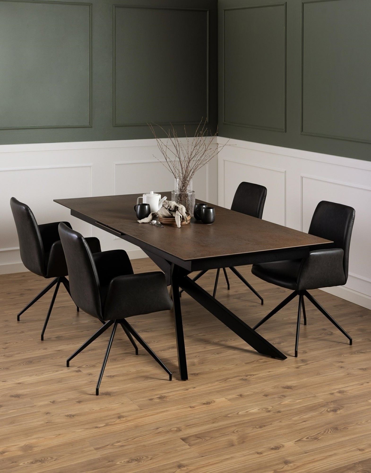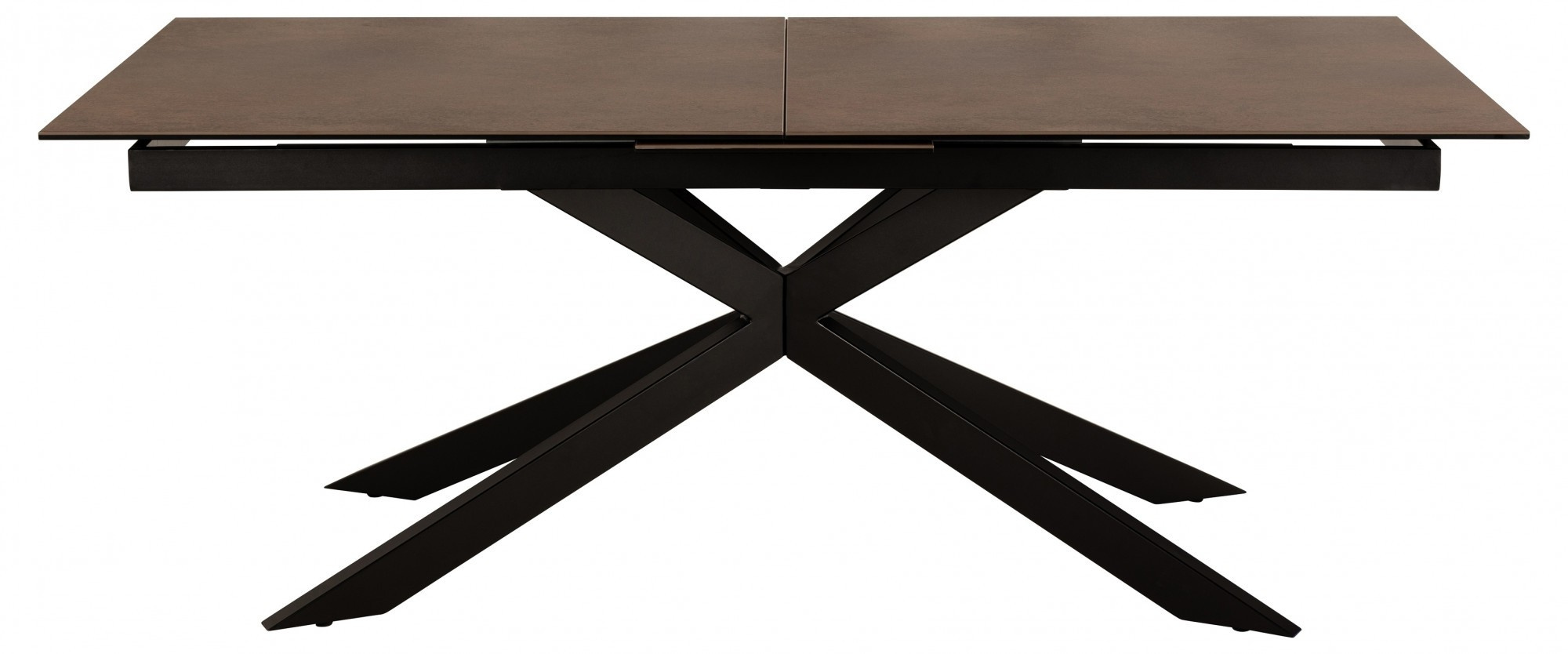Rezavě hnědá keramická deska dodává stolu Irwine industriální charakter. Stůl lze snadno prodloužit díky přídavnému prvku desky. Stačí jemně zatáhnout za konec stolu a uprostřed se objeví odpovídající prodloužení. Celý komplet doplňuje černá základna ve tvaru kříže, která byla navržena tak, aby bylo možné pohodlně sedět kolem stolu. Hlavní vlastnosti: Praktický jídelní stůl v industriálním stylu Odolný vůči teplu a poškrábání rezavě hnědý keramický povrch Synchronně vysouvatelné křídlo z odpovídající keramiky Křížová základna s práškovým nástřikem v černé barvě Dánský design chráněný výhradně pro Actonu Pohodlné sezení pro 8/10 osob bez/s prodlužovacím křídlem Počet kartonů: 2 Rozměry kartonů: 208x108x12,5cm 91x70x9cm Hmotnost kartonů: 96kg 17kg