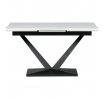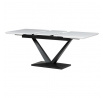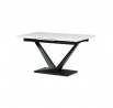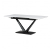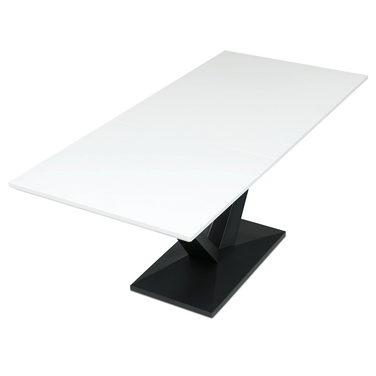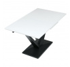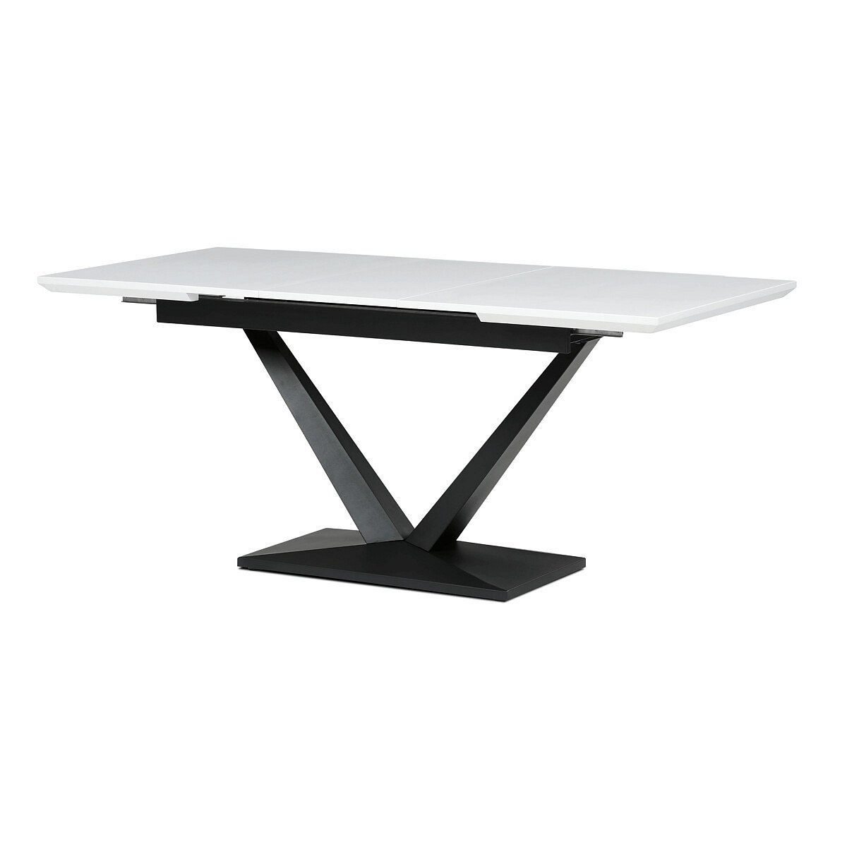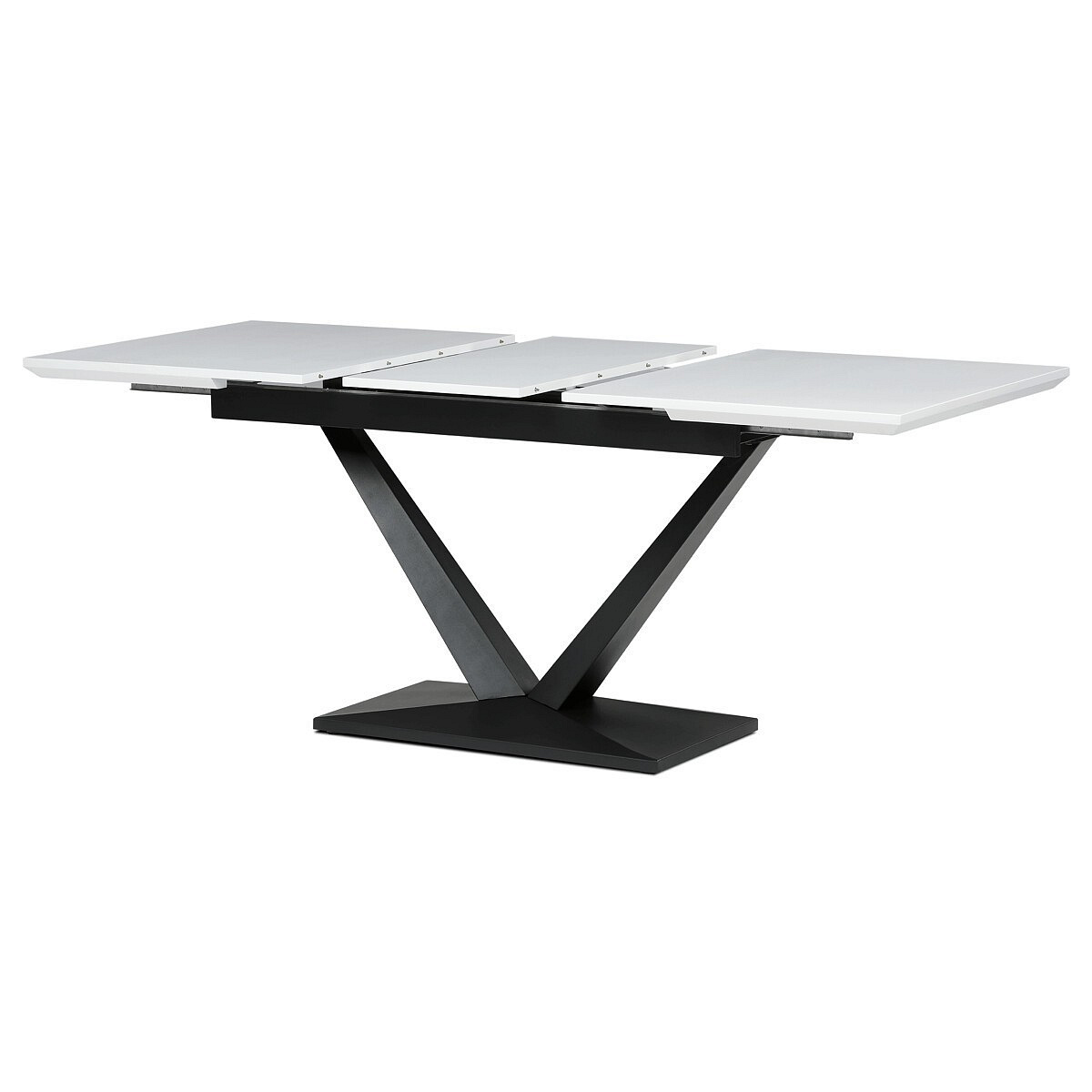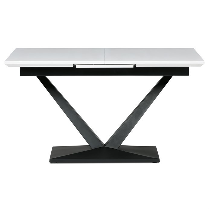 Rozkládací jídelní stůl značky Autronic vyniká svou robustní centrální nohou ve tvaru V. Bílá matná deska z MDF materiálu nabízí odolný a snadno udržovatelný povrch, ideální pro každodenní stolování. Díky rozkládacímu mechanismu snadno přizpůsobíte velikost stolu aktuálním potřebám, což je skvělé pro rodinná setkání nebo hosty.Tento stůl bude stylovým a funkčním doplňkem každé jídelny, který zaujme na první pohled.