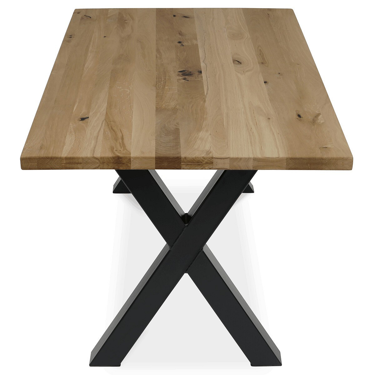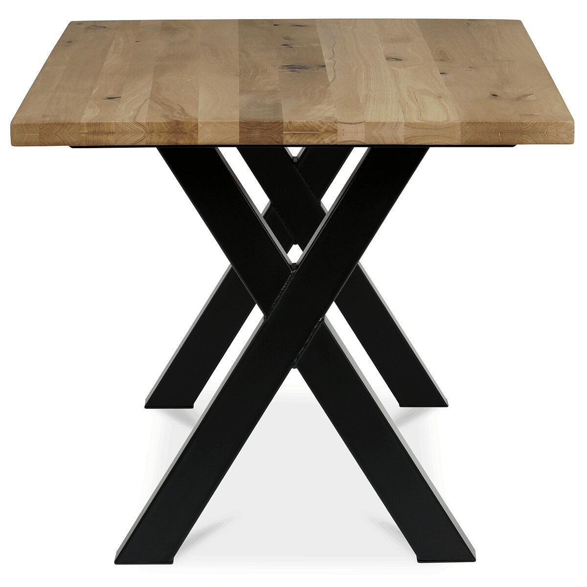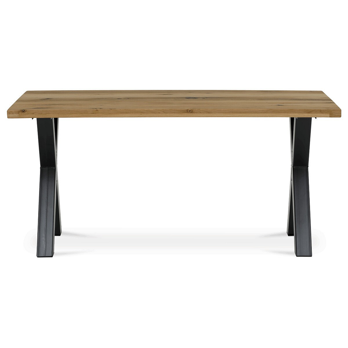 Jídelní stůl DS-X160 DUB kombinuje přírodní krásu masivního dubového dřeva s moderní stabilitou kovové podnože v černém provedení. Deska stolu o rozměrech 160 × 90 cm je vyrobena z masivu s olejovaným povrchem, který zvýrazňuje přirozenou strukturu a barevné odstíny dubu, zároveň usnadňuje údržbu a chrání dřevo. Robustní kovová podnož ve tvaru kříže zajišťuje pevnost a stabilitu celé konstrukce, což přispívá k dlouhé životnosti a bezpečnému používání. Výška stolu 75 cm odpovídá standardním ergonomickým parametrům pro pohodlné sezení u jídelního stolu. Tento model je ideální volbou pro ty, kteří hledají kombinaci tradičního materiálu a industriálního designu s důrazem na kvalitu a funkčnost.