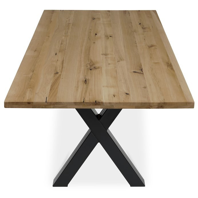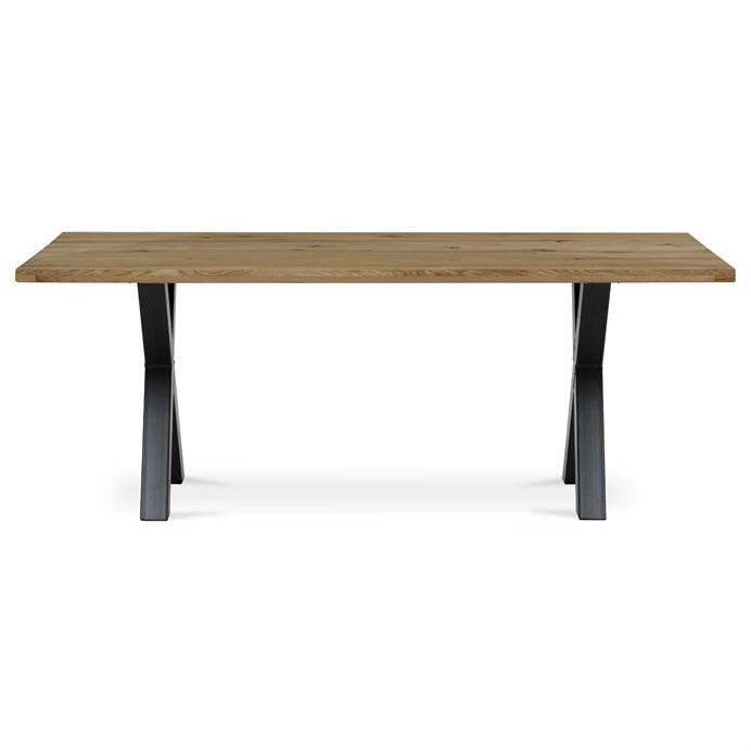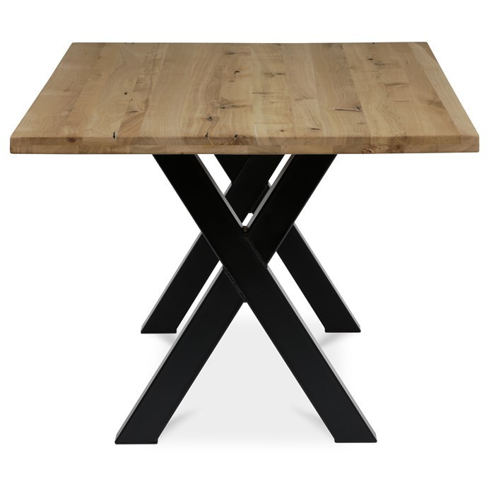 Jídelní stůl DS-X200 DUB kombinuje přírodní krásu masivního dubového dřeva s moderní stabilitou kovové podnože v černém provedení. Deska stolu je vyrobena z masivního dubu s olejovaným povrchem, který zvýrazňuje přirozenou strukturu dřeva a zároveň usnadňuje údržbu. Robustní kovová podnož ve tvaru kříže zajišťuje pevnou oporu a stabilitu během používání. Rozměry 200 × 100 × 75 cm poskytují dostatek prostoru pro pohodlné stolování i větší počet osob. Stůl je navržen bez rozkládací funkce, což podtrhuje jeho jednoduchý a nadčasový design vhodný do různých interiérů.