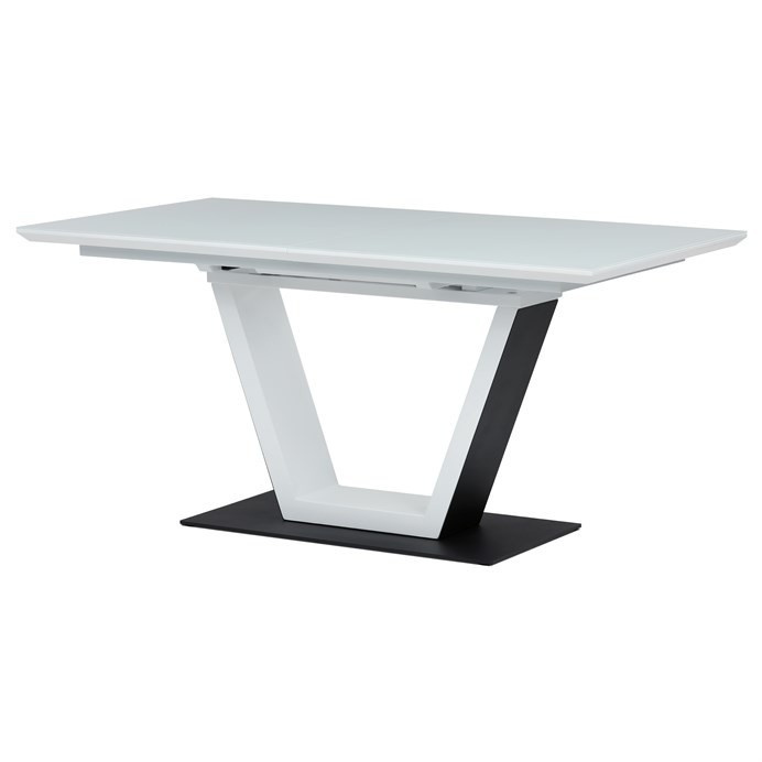Luxusní rozkládací jídelní stůl značky Autronic v elegantní bílé barvě je ideální volbou pro moderní interiéry. Obdélníková deska z tvrzeného skla nabízí odolný a snadno udržovatelný povrch. Jedinečný design s centrální podnoží ve tvaru „V“ na stabilní základně dodává stolu výrazný charakter. Díky rozkládacímu mechanismu lze šířku stolu snadno přizpůsobit aktuálním potřebám, což z něj činí perfektní řešení pro rodinné večeře i společenské události. Skvělá kombinace stylu a praktičnosti.