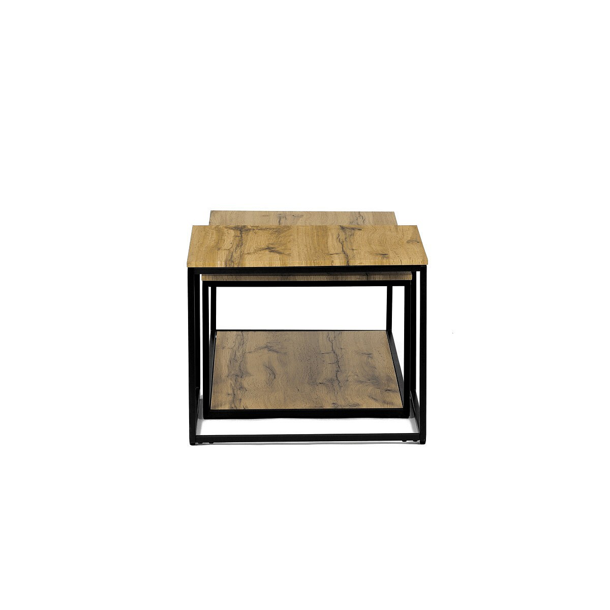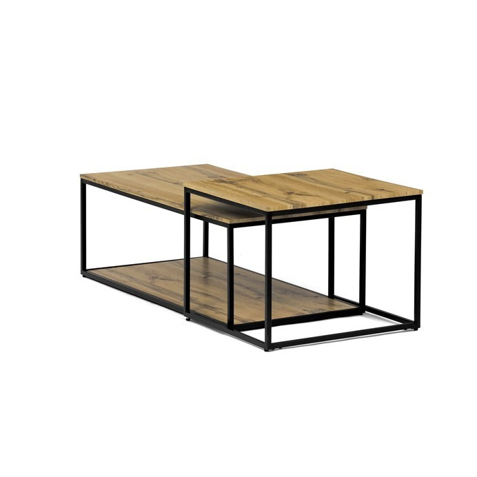 Konferenční stolek značky Autronic v industriálním stylu kombinuje eleganci a funkčnost. Deska z MDF v dekoru divokého dubu nabízí teplý přírodní vzhled, který krásně kontrastuje s černou kovovou konstrukcí. Díky svému dvouúrovňovému designu poskytuje stolek nejen dostatek místa pro odkládání, ale také praktický úložný prostor na spodní polici. Tento stolek je ideálním doplňkem do moderních obývacích pokojů, kde vynikne svou jednoduchostí a zároveň praktičností. Matný povrch desky je odolný a snadno se udržuje. Rozměr menšího stolku je 55 x 50 x 43,5 cm.
