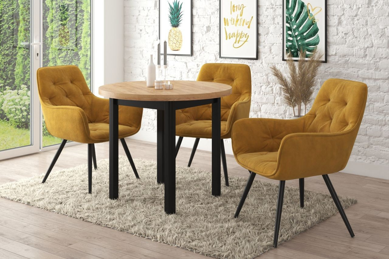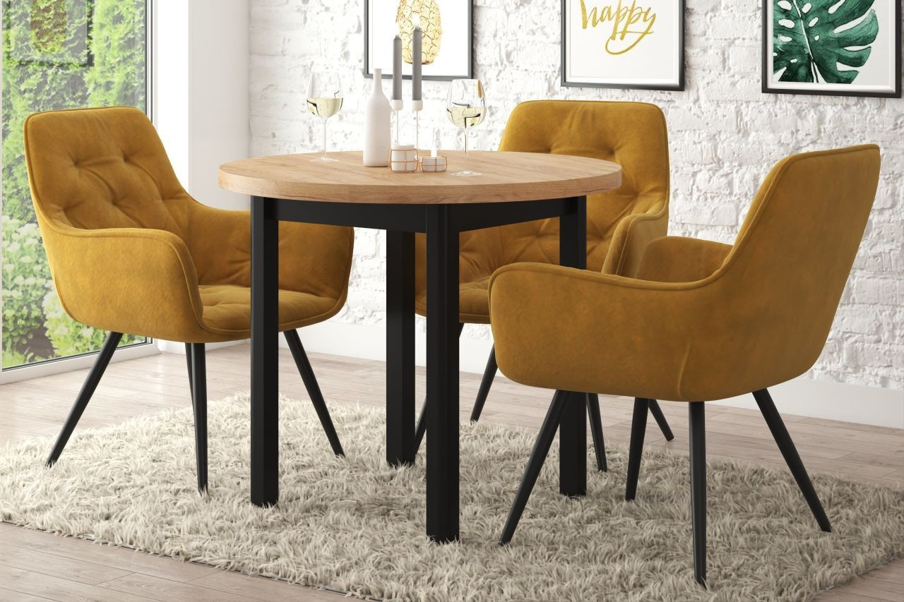 Stůl kulatý dub zlatý craft/černý Fi80 ST24-FX 80