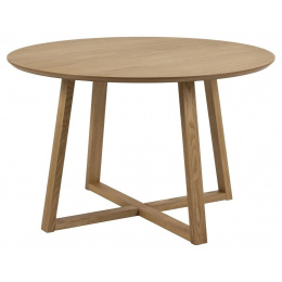 Stůl Malika je vyroben z dubového dřeva pokrytého dýhou v barvě přírodního dřeva. Má kulatou desku o průměru 120 cm a zajímavě vypadající základnu složenou ze čtyř nohou, které jsou spojeny dvěma křížícími se lištami. Díky nim je stůl velmi stabilní. Stůl Malika je nábytek v moderním stylu, výjimečně minimalistický. Hodí se do domácího interiéru i do restaurace. Počet kartonů: 1 Rozměry kartonů: 126,5x126,5x8cm Hmotnost kartonů: 35,8kg