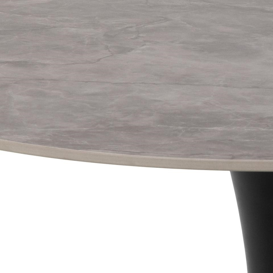 Stůl do jídelny vytváří scénu pro mnoho výjimečných okamžiků v jídelně. Ten stůl doplní svým moderním vzhledem. Stojící na kulaté, černé základně, štíhlá deska je vyrobena z šedé keramiky, snadno udržovatelného materiálu známého svými vlastnostmi odolnými vůči teplu a poškrábání. Je to projekt, který nabízí jak vzhled, tak praktičnost. Kulatý stůl do jídelny Malta, deska z leštěné keramiky Batis v šedé barvě, základna ve tvaru trumpety z matné, černé, hrubé oceli lakované práškovou barvou Max. zatížení 100 kg. Vyžaduje montáž. Hmotnost stolu: 28,9 kg