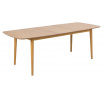 Stůl Montreux je celý vyroben ze dřeva. Má velkou desku pokrytou dýhou z dubového dřeva, v přírodním odstínu. Rohy bláta jsou pěkně zaoblené a jeho okraj je lehce seříznutý, což mu dodává jemný, organický vzhled. Základna je vyrobena z kaučukového dřeva mořeného na dubovou barvu, která ladí s deskou. Deska je rozkládací, pod hlavní deskou se nacházejí desky zvětšující stůl na rozměry 219x90 cm. Počet kartonů: 1 Rozměry kartonů: 93,8x189x13cm Hmotnost kartonů: 43,5kg
