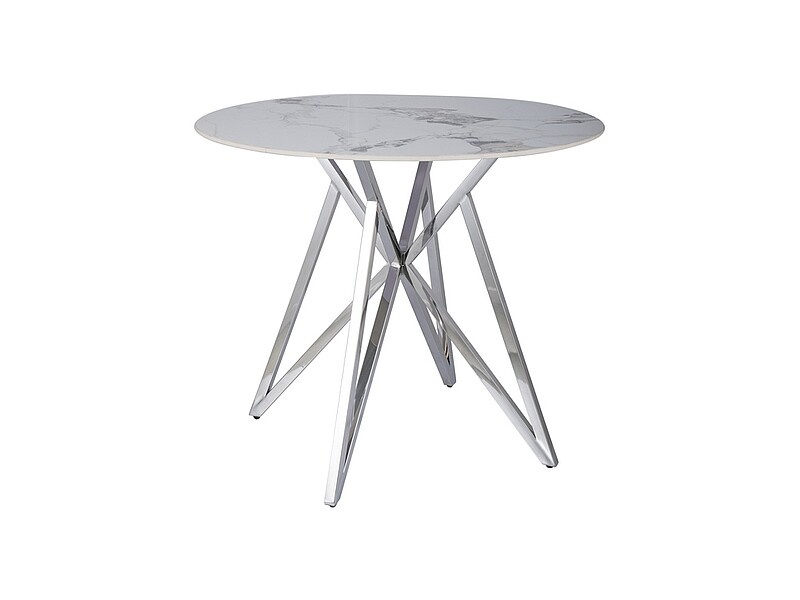 Jídelní stůl MURANO 90 cm, Efekt bílého mramoru/Chrom