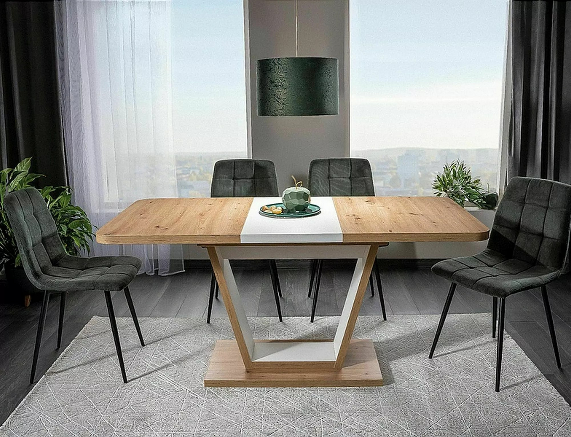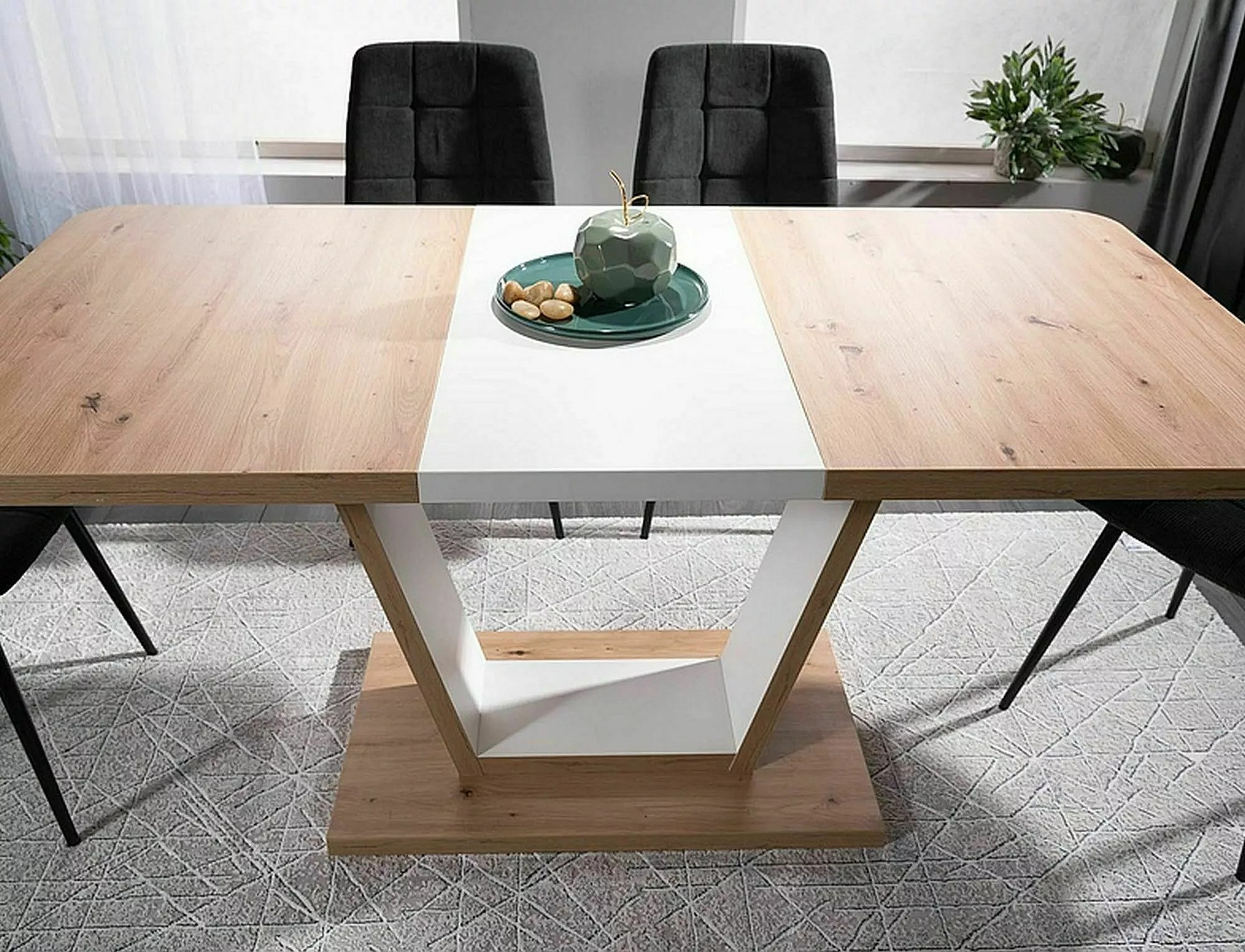Jídelní stůl NIGEL, Dub Artisan/Bílý mat