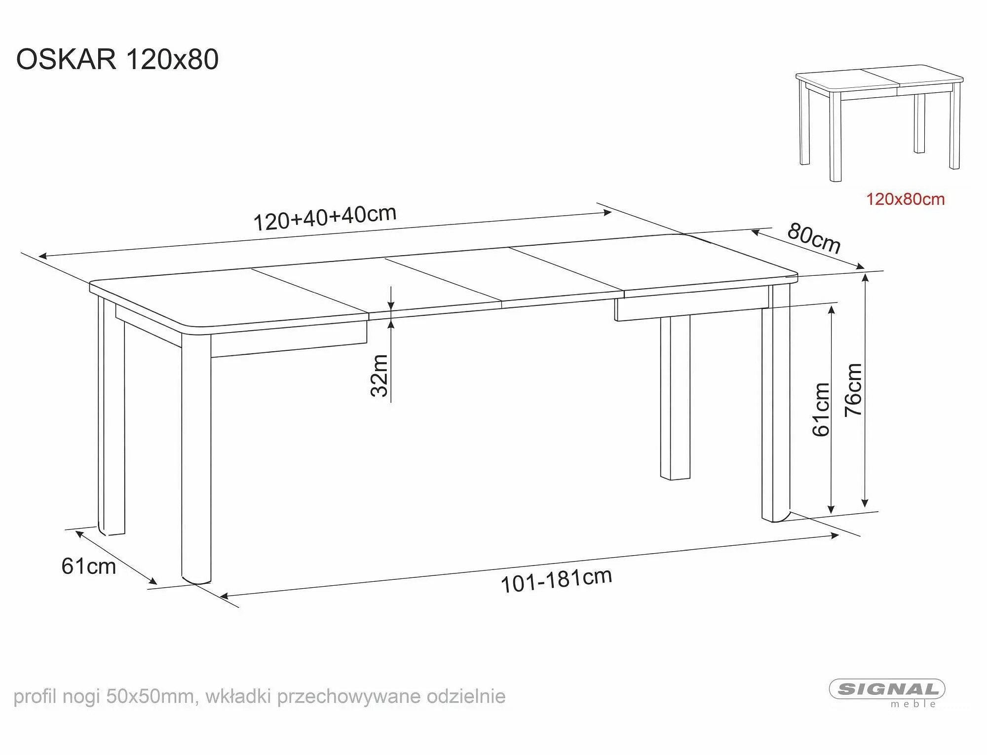 STŮL OSKAR DĽB CREMONA TORRO / KAŠMÍR 120(200)x80