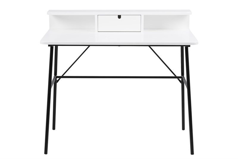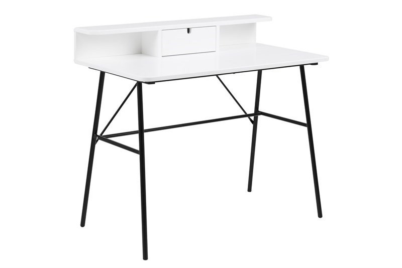 Psací stůl Pascal je minimalistický stůl vyrobený z kovu a dřeva mořeného na bílou barvu.
