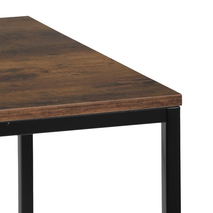 Pracovní stůl značky Autronic v industriálním stylu kombinuje funkčnost a moderní design. Hnědá MDF deska s dekorem starého dřeva a matnou úpravou přináší do interiéru teplý, přírodní vzhled. Stabilní černá kovová konstrukce se čtvercovými nohami zaručuje pevnost a odolnost. Praktické policie po straně poskytují dostatek úložného prostoru pro knihy, dokumenty nebo dekorace, což oceníte v každé pracovně. Stůl se hodí do domácí kanceláře či pracovny a díky svému industriálnímu vzhledu snadno zapadne do moderních interiérů.Rozměr police: 60 x 21 cm.