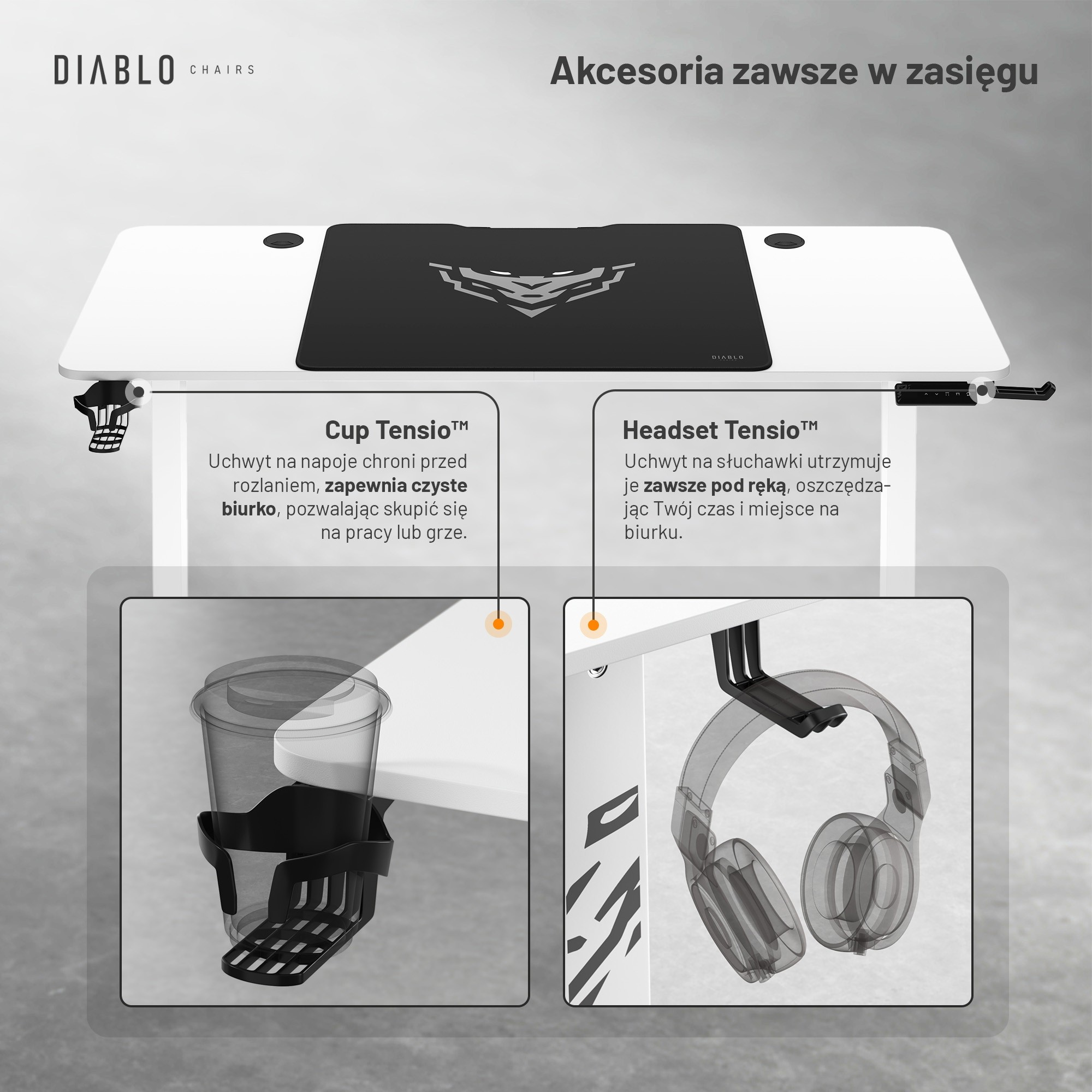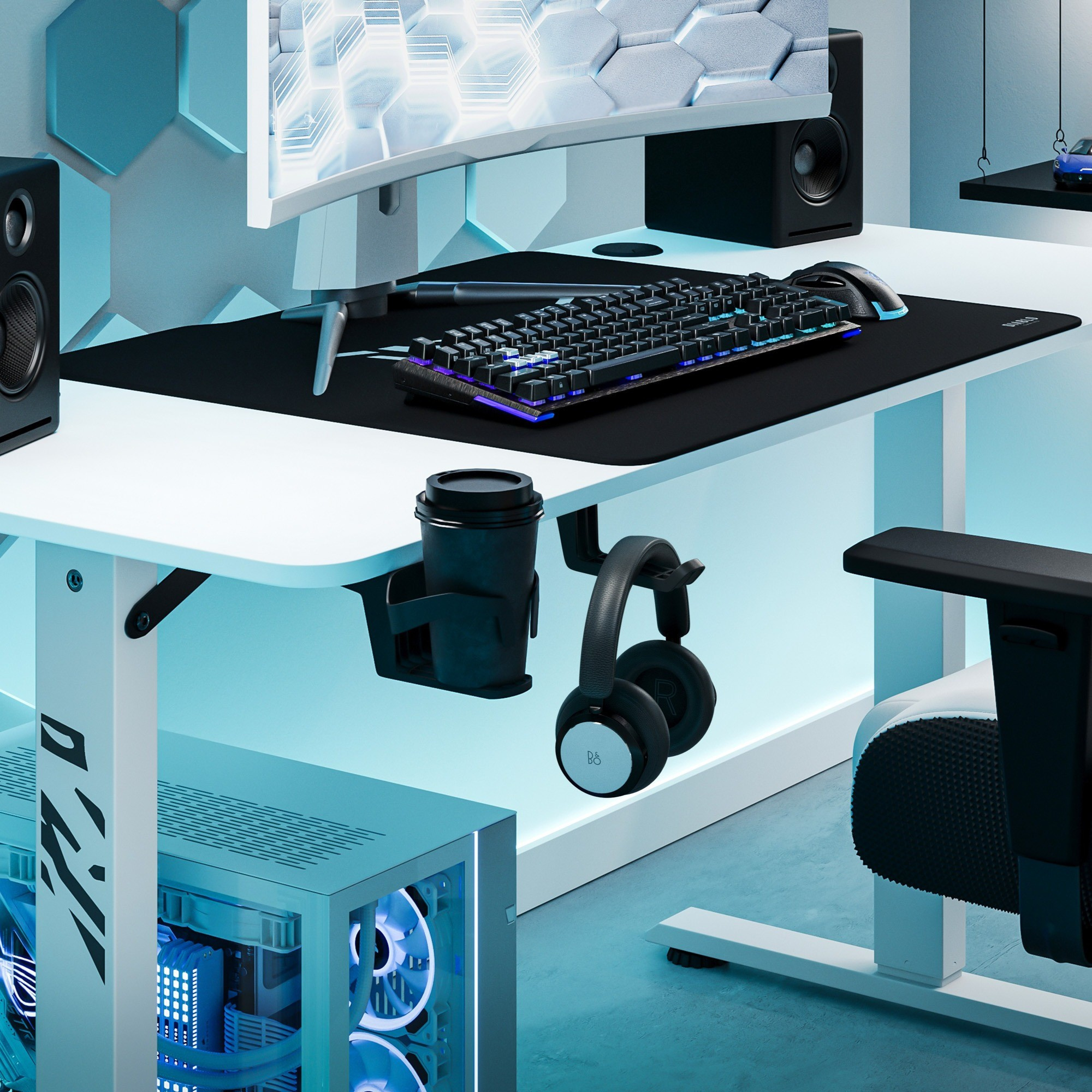 Už žádné rozlité nápoje a zamotané kabely! Praktické držáky na hrnek a sluchátka udrží váš stůl uklizený a organizovaný. Vše, co potřebujete, máte vždy po ruce, bez zbytečného nepořádku.