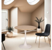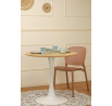 Stůl Simplet Skinny z řady s dřevěnou deskou je nejnovější verzí stále živého projektu stolu na jedné noze. Stůl s kovovou, práškově lakovanou nohou ve tvaru trumpety je častou volbou designérů a to ne náhodou. Jedna noha umístěná centrálně pod deskou stolu je univerzální řešení. Díky takové konstrukci stolu můžeme židle kolem něj umisťovat libovolně, aniž bychom museli brát ohled na nohy stolu. Inovativní, a zároveň zapadající do současných trendů. Deska z desky zdobené dýhou imitující dřevo se osvědčí v přírodním interiéru, kde vládne boho styl a barvy přírody. Díky použití takového materiálu je stůl odolný proti poškrábání a co je nejdůležitější, snadno se čistí. Rozměry balení: 1) 94x94x5cm, 2) 54x52x9cm, 3) 6618x16cm. Váhy kartonů: 11kg, 4kg, 2kg. Průměr základny 49,5 cm
