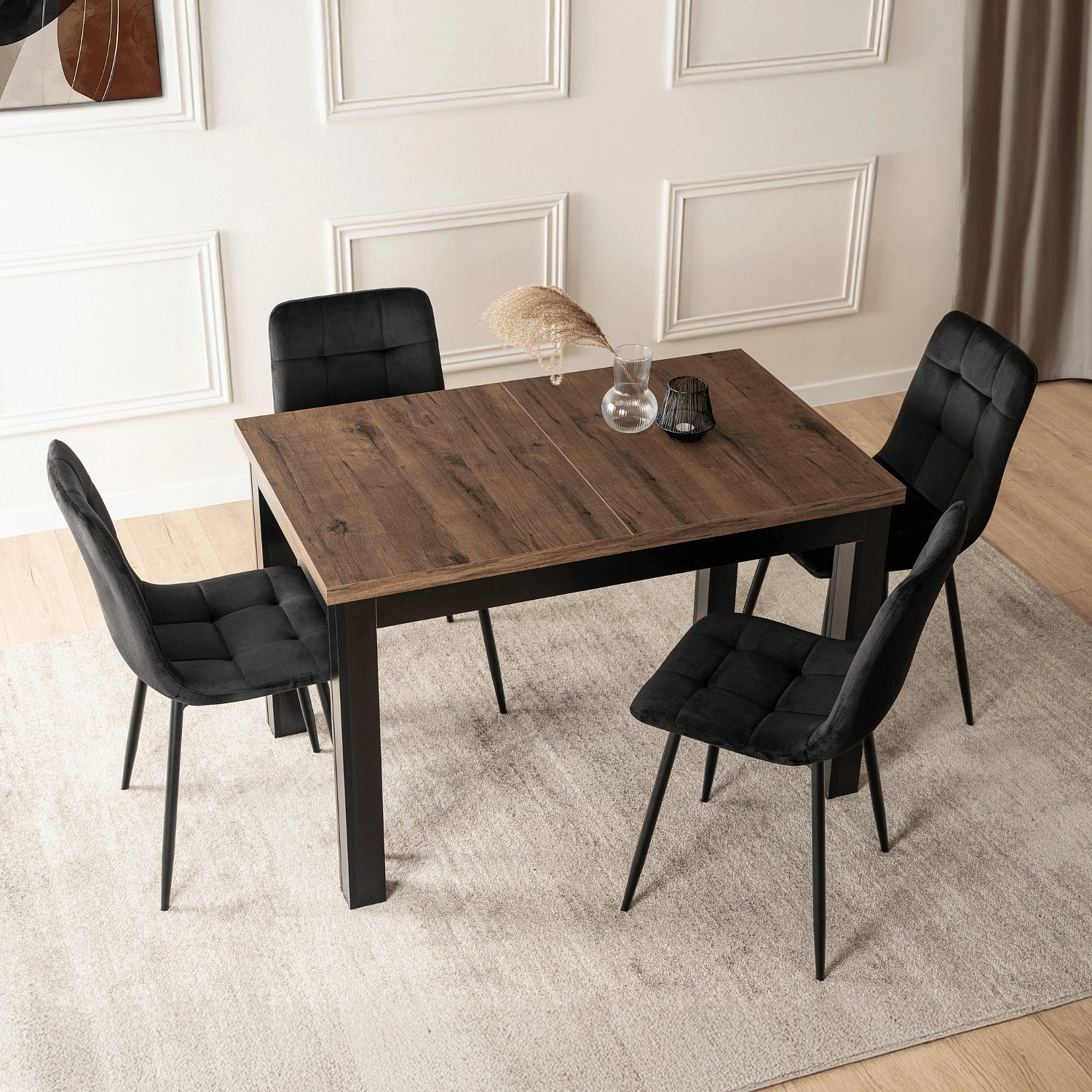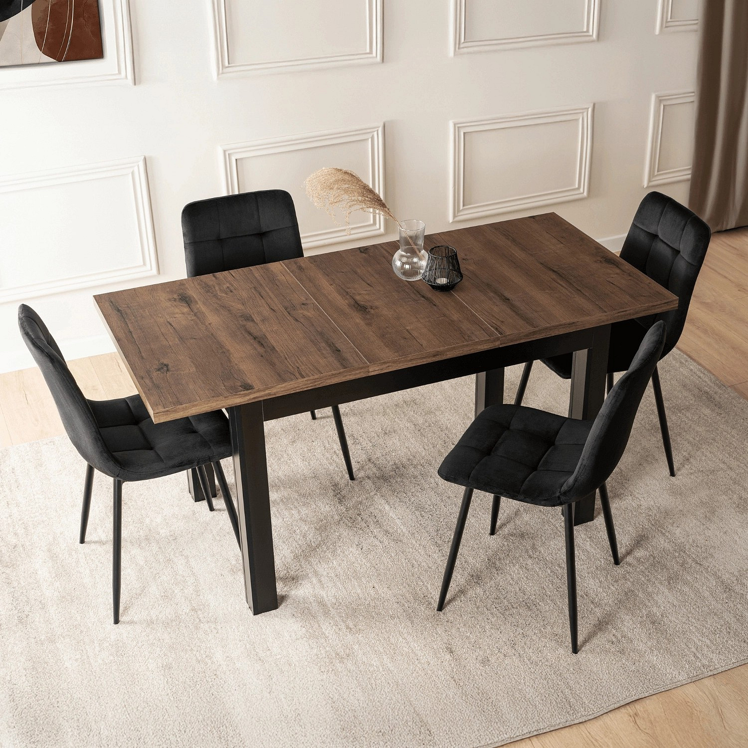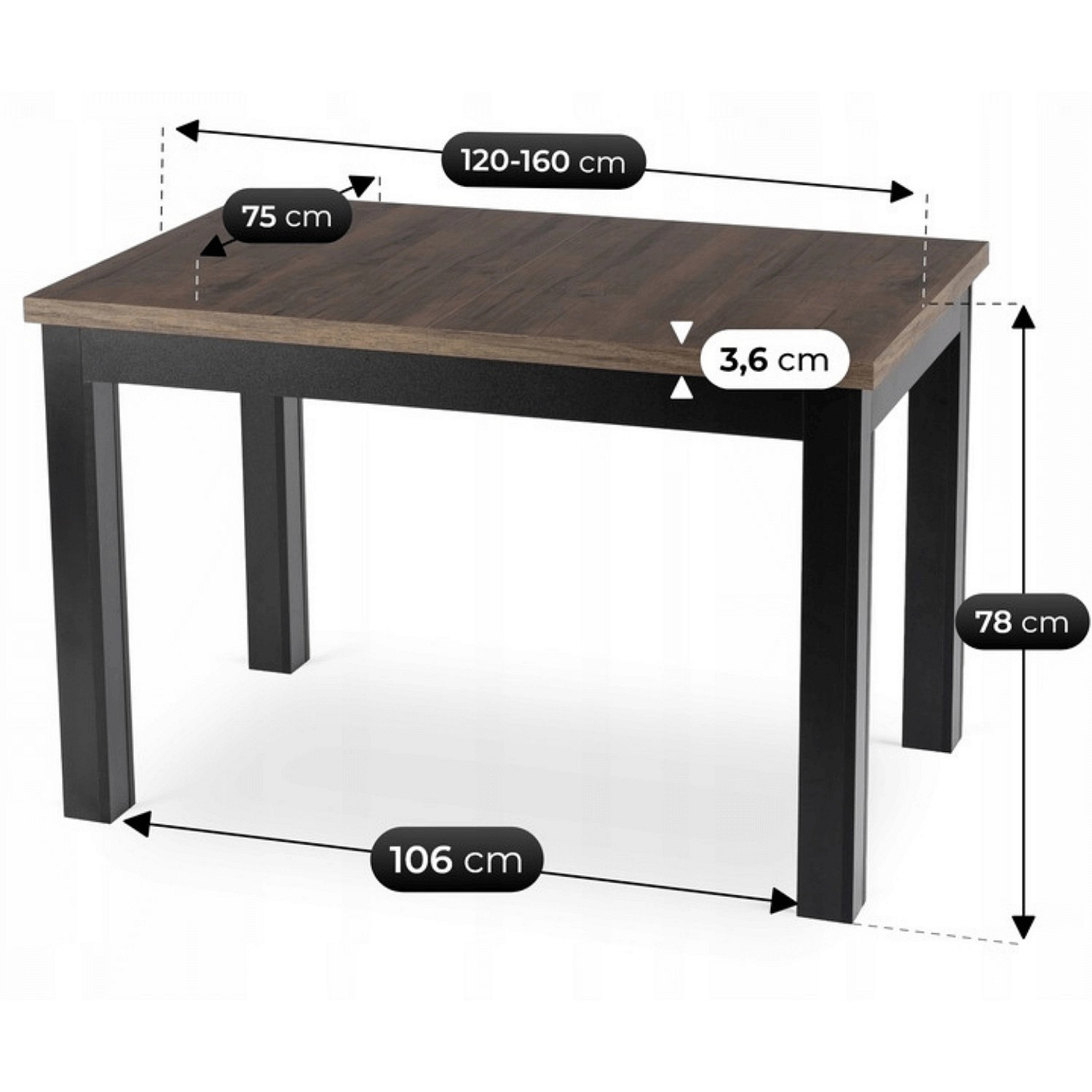 Stůl SKUBI Rozkládací 120-160 cm Ořech/Černý