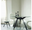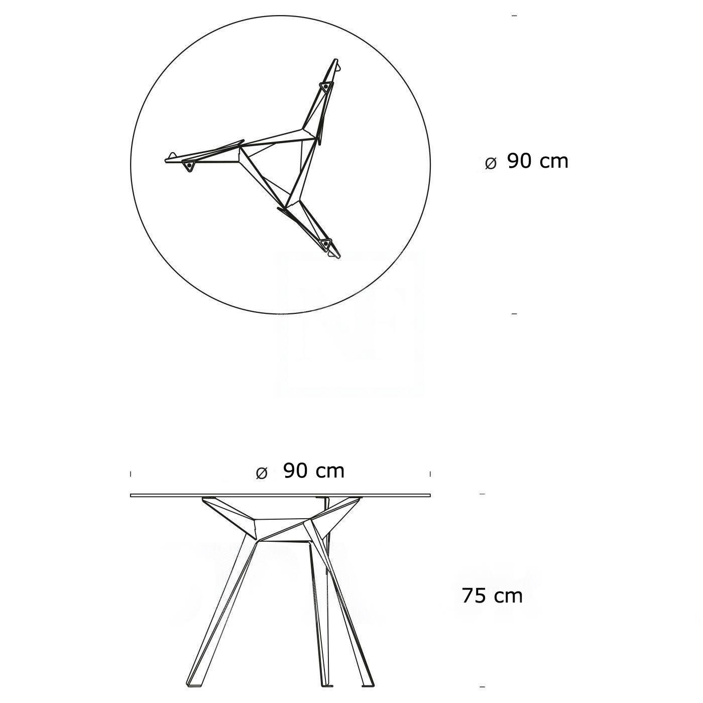 Stůl Troy je stůl s nepochybně moderní a výraznou formou. Stůl spojuje motiv umění origami a všestrannou kulatou, skleněnou desku o průměru 90 cm. Základem stolu jsou tři nohy, které odkazují na pečlivě složené kousky papíru. Na trojnohé základně byl umístěn deska z tvrzeného skla. Kulatá skleněná deska není trvale připevněna k základně, ale váha desky a chromované úchyty zabraňují jejímu posouvání. Montáž spočívá v rovnoměrném uložení skla na třech prvcích základny. Nohy stolu byly zakončeny patkami, které chrání podlahu před poškrábáním. Materiál základny je ocel lakovaná práškovou barvou na černo. Tloušťka stěny oceli 0,5 cm. Povrchová úprava základny je matná. Deska je vyrobena z tvrzeného skla. Tloušťka desky stolu je 1 cm. Stůl vyžaduje montáž. Maximální zatížení stolu je 50 kg. Hmotnost stolu je 16 kg.