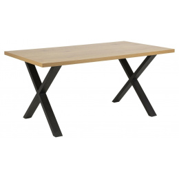 Stůl Wales Cross 160x90 je mimořádně solidní užitkový nábytek, který poslouží po dlouhá léta. Udržovaný v industriálně-moderním stylu. Vyrobený z pevné desky o tloušťce 4 cm a kovových křížených nohou, které jsou zárukou trvanlivosti. Deska byla pokryta dýhou se strukturou divokého dubu, která chrání před veškerými nečistotami. Základem jsou mimořádně efektní ocelové profily natřené práškovou barvou na černo. Matný povrch nohou stolu mu dodává eleganci. Hmotnost stolu: 44 kg Maximální počet ks. v kartonu: 1