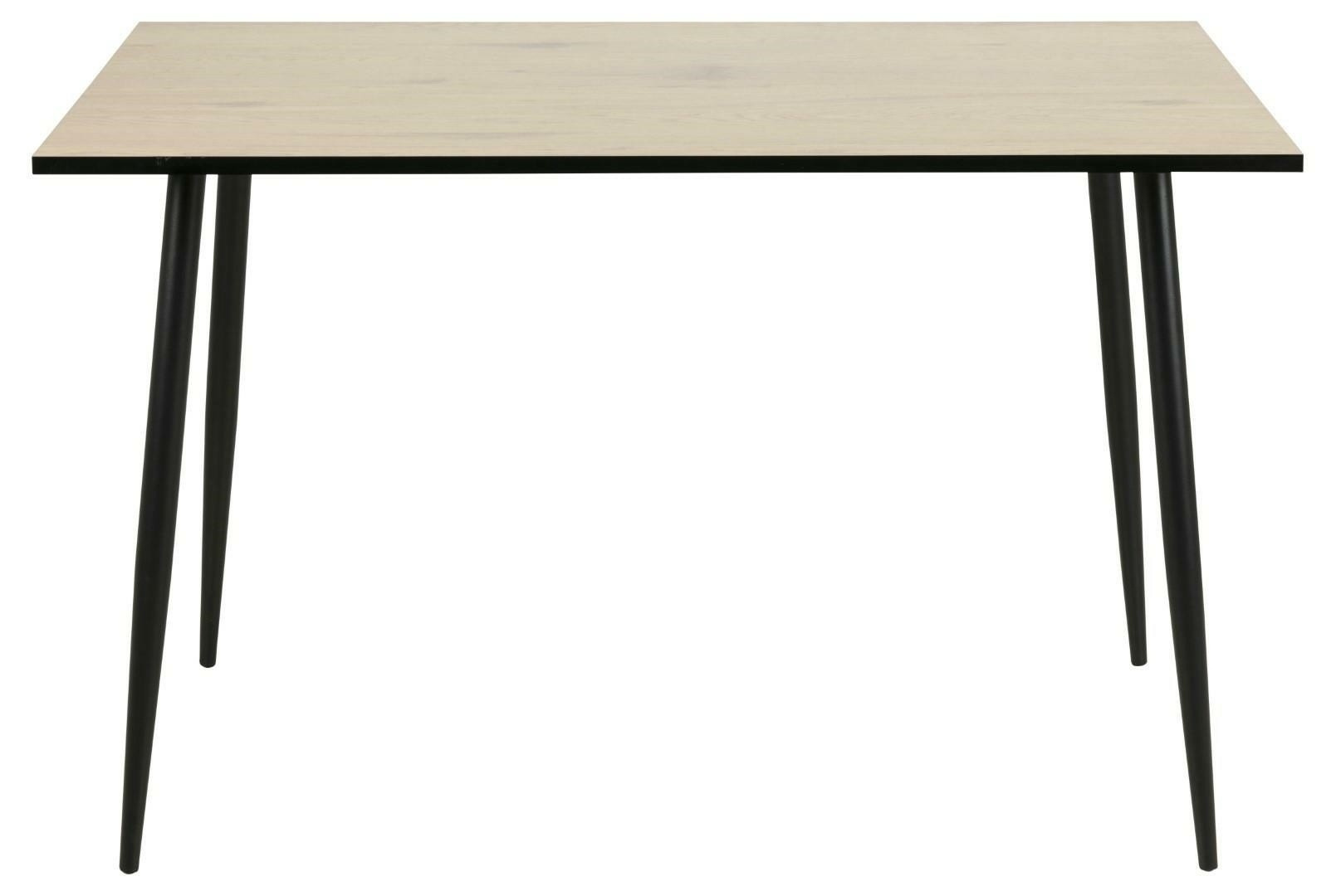 Stůl Wilma je kombinací desky v barvě divokého dubu s kovovou základnou. Dřevěná deska s dýhou imitující dub dokonale ladí s kovovou, matnou, práškově lakovanou černou základnou. Boky blatu pro kontrast byly polepeny dýhou v barvě a struktuře černého dubu. Stůl se skvěle hodí do každého interiéru. Hodí se do hotelových prostor, gastronomických zařízení i domácí jídelny či obývacího pokoje. Hmotnost stolu: 19,5 kg Maximální počet ks. v kartonu: 1